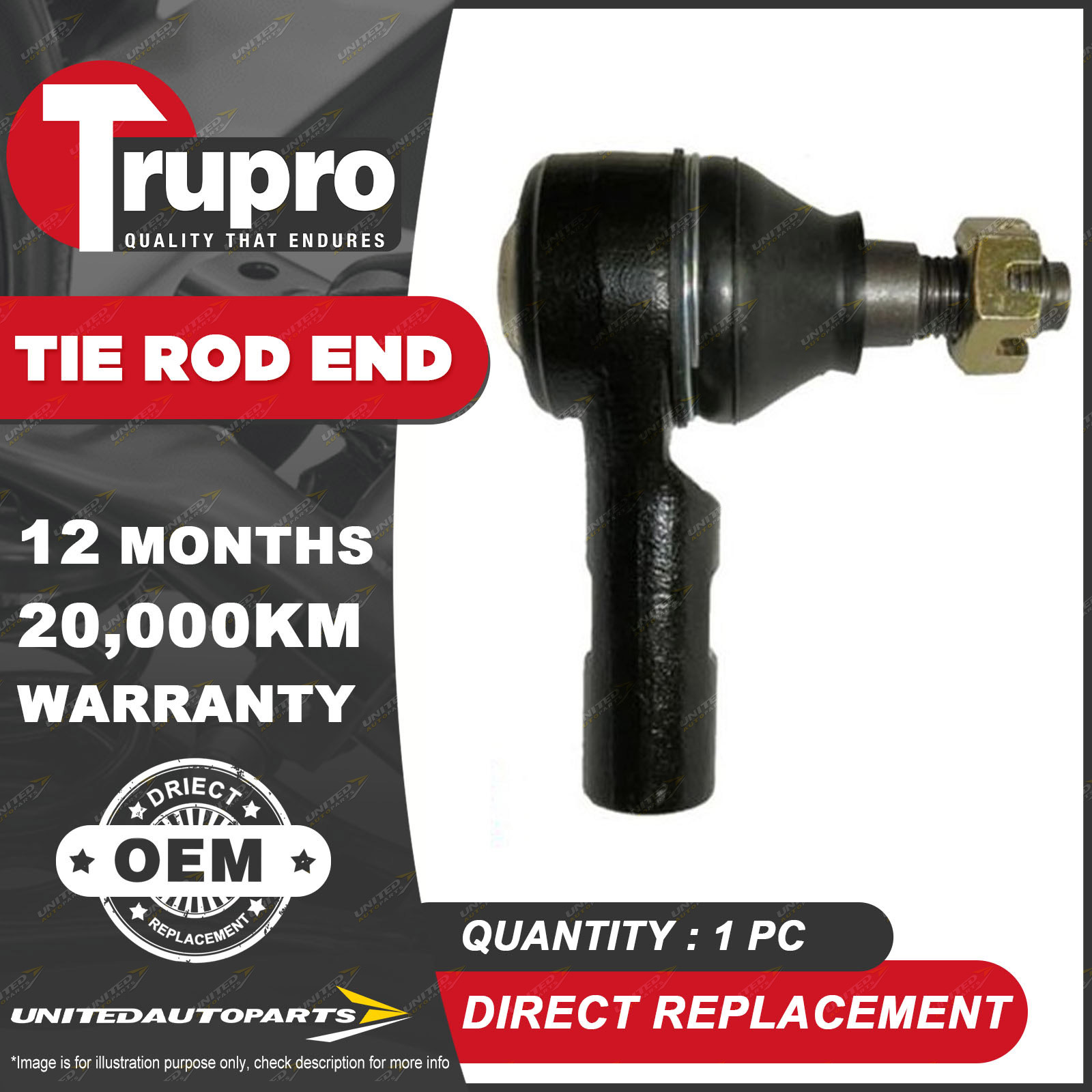 CONTENTS: 1 Pc Trupro RH Outer Tie Rod End SUITS: GREAT WALL V200 X200 K2 08/11-On GREAT WALL V240 X240 K2 Series 4WD Ute 06/09-On (*please advise year model, so we can make sure send you the right parts) |