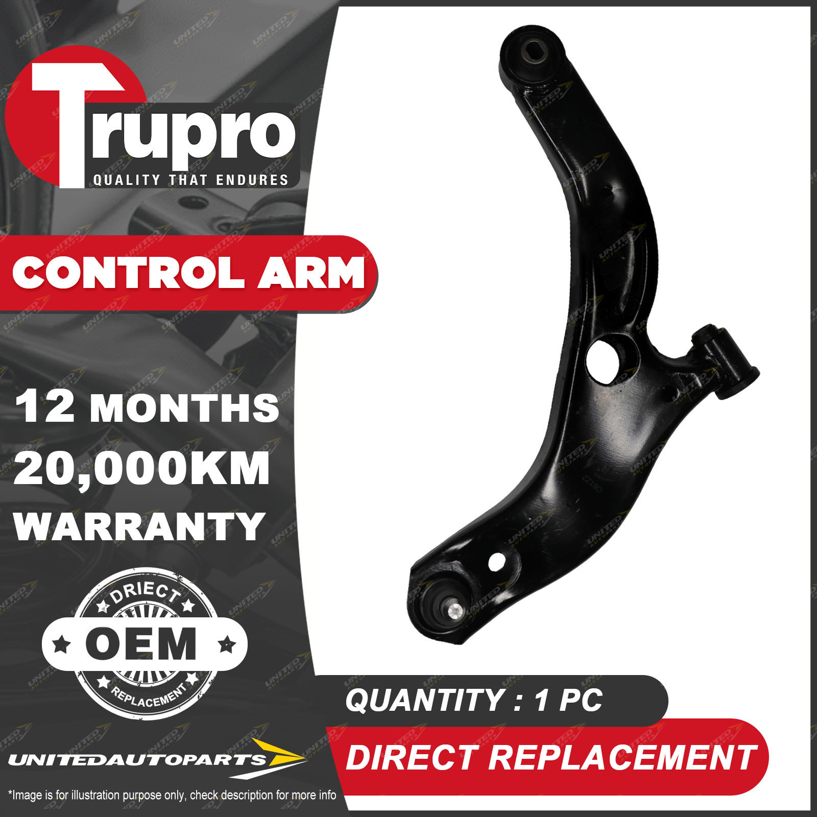 CONTENTS: 1 Pc Trupro Front Lower RH Control Arm (*please advise year model, so we can make sure send you the right parts) |