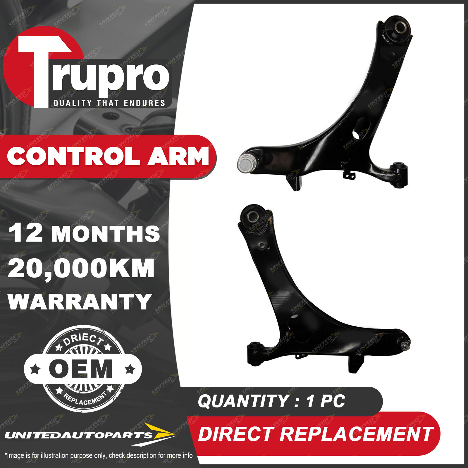 CONTENTS: 1 Pc Trupro Front Lower RH Control Arm (*please advise year model, so we can make sure send you the right parts) |