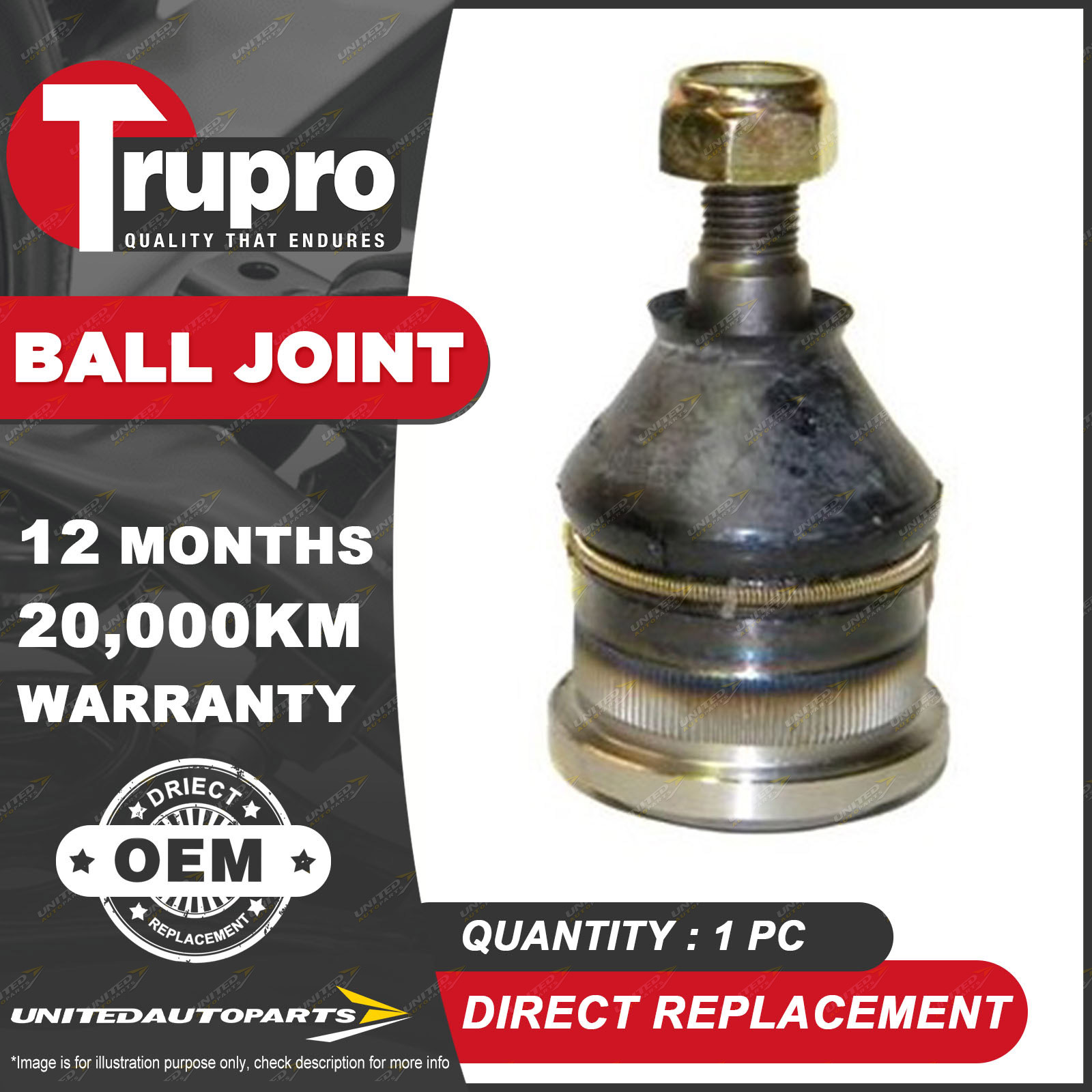 CONTENTS: 1 Pc Trupro RH Lower Ball Joint SUITS: HOLDEN GEMINI TC TD TX 1974-79 HOLDEN GEMINI TE TF TG 1979-85 (*please advise year model, so we can make sure send you the right parts) |