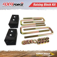 4X4FORCE Block Kit will use lift blocks and U bolts to raise the rear of your vehicle.This is done by inserting the cast lift block between the factory rear leaf spring and alex .It is the easy way to give the rear end of your truck or SUV a few inches of lift.
