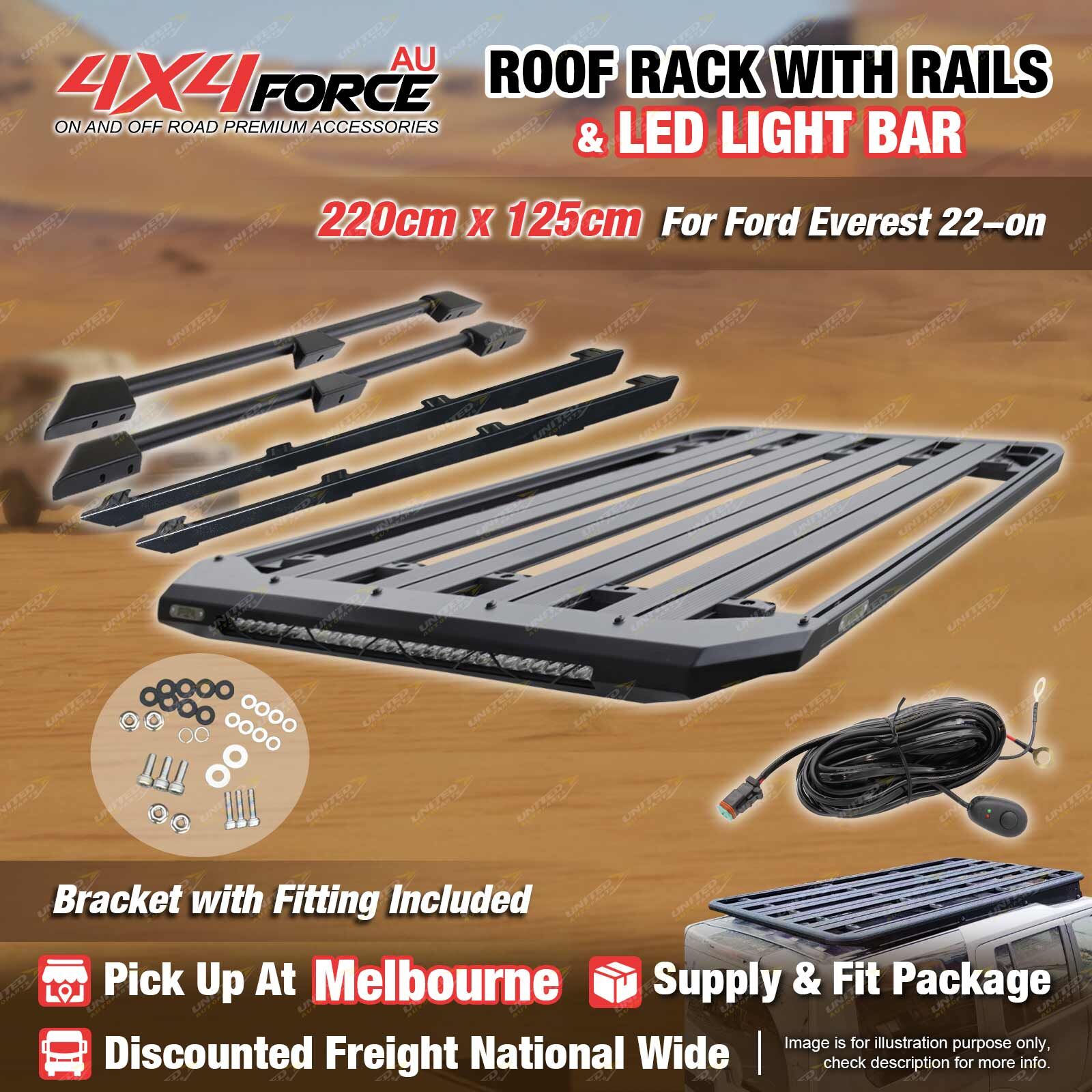 220 x 125cm Roof Rack Platform with Light Bar & Rails for Ford Everest 22-on MEL