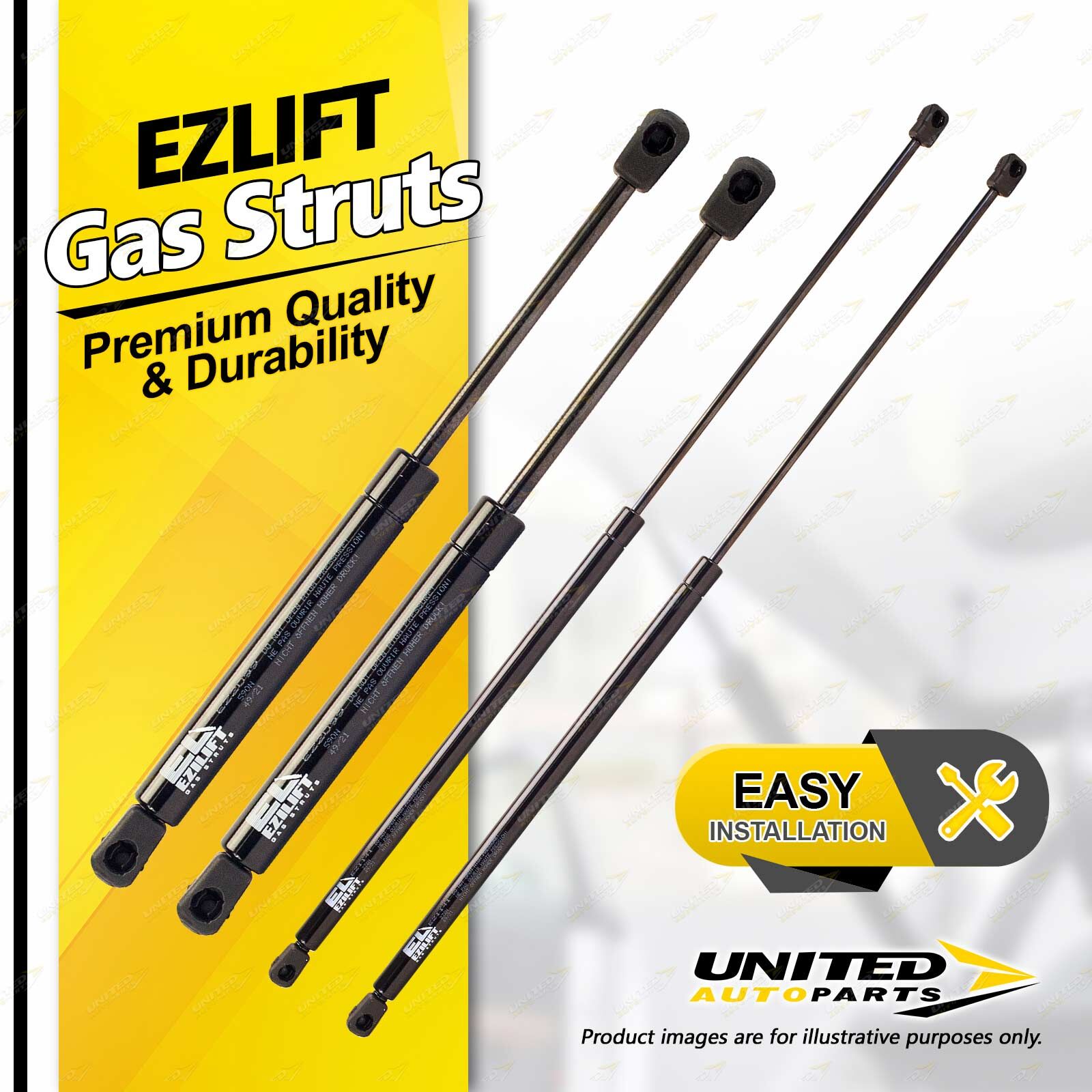 United Autoparts Gas Struts are the market' s premium replacement product.All products are 100% Tested, easy to fit with the use of simple hand tools and restore peace of mind and personal safety within minutes. |