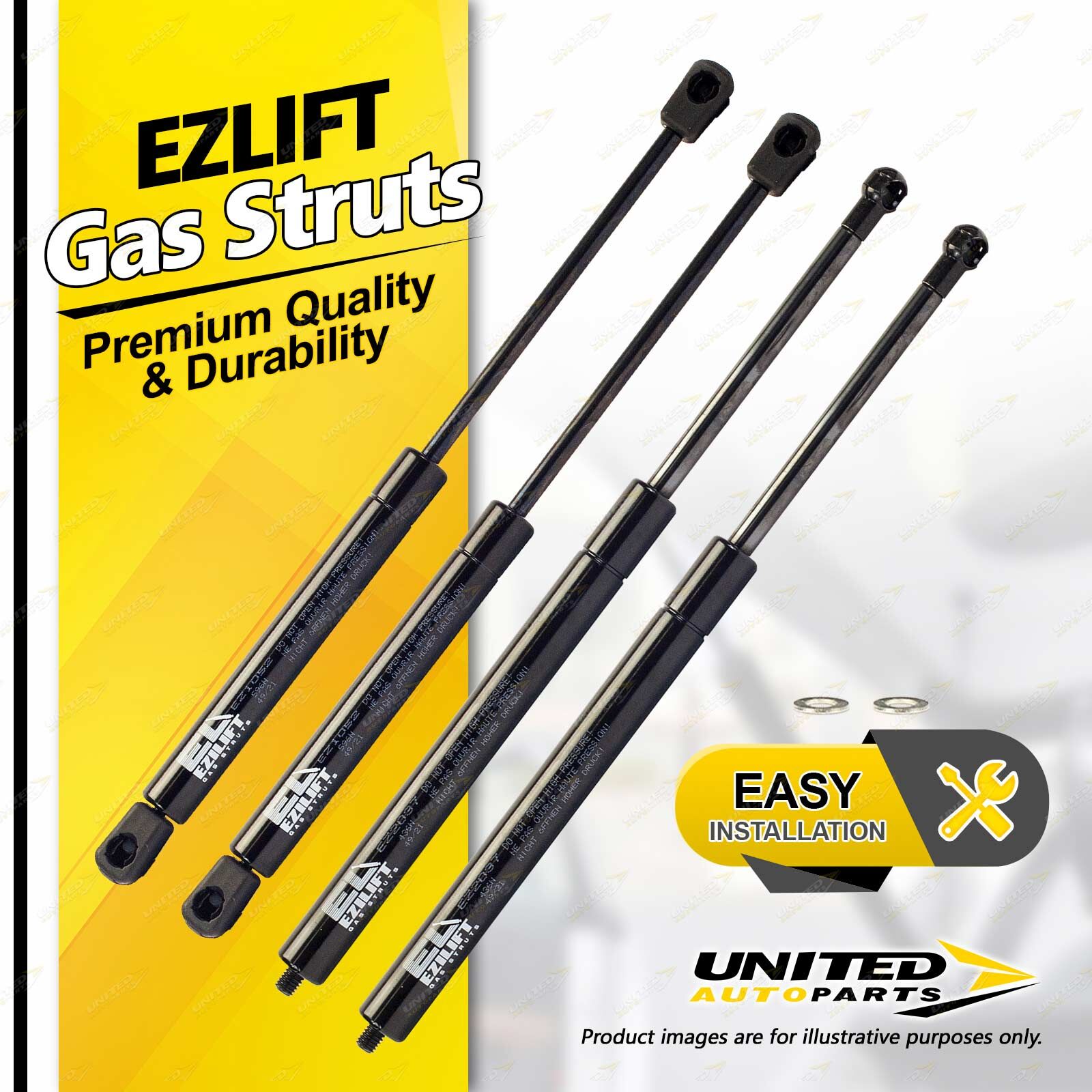 United Autoparts Gas Struts are the market' s premium replacement product.All products are 100% Tested, easy to fit with the use of simple hand tools and restore peace of mind and personal safety within minutes. |