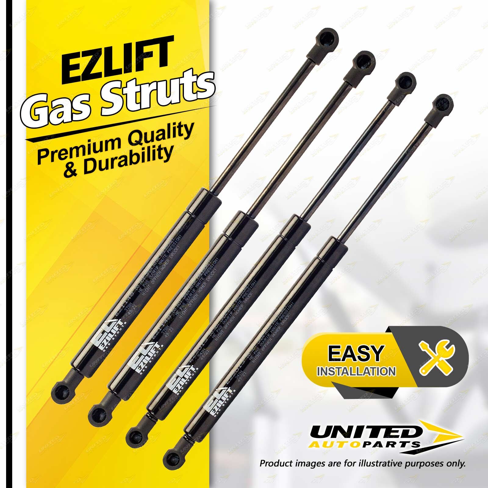 United Autoparts Gas Struts are the market' s premium replacement product.All products are 100% Tested, easy to fit with the use of simple hand tools and restore peace of mind and personal safety within minutes. |