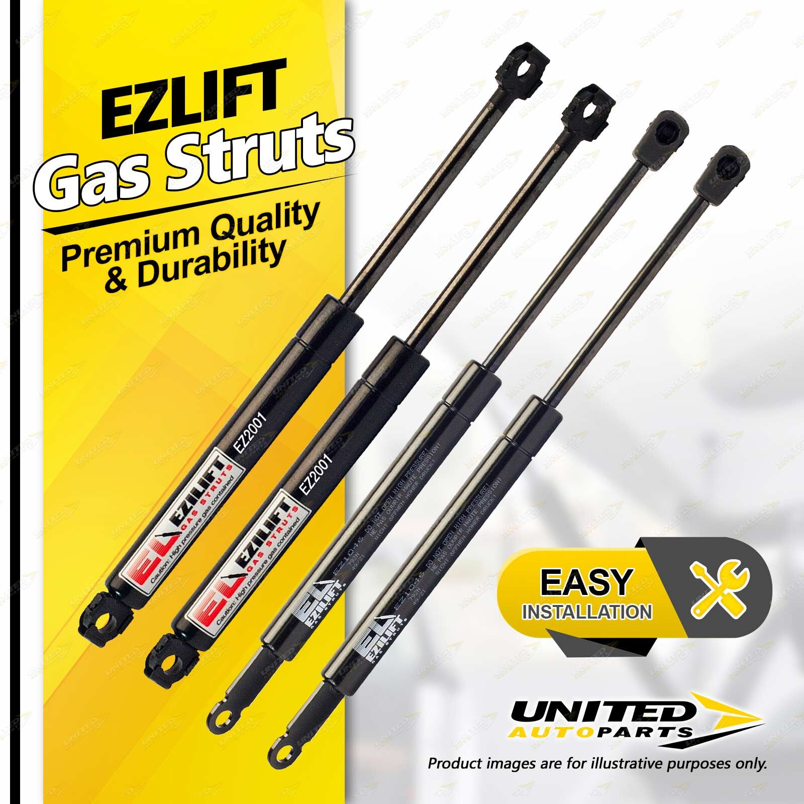 United Autoparts Gas Struts are the market' s premium replacement product.All products are 100% Tested, easy to fit with the use of simple hand tools and restore peace of mind and personal safety within minutes. |