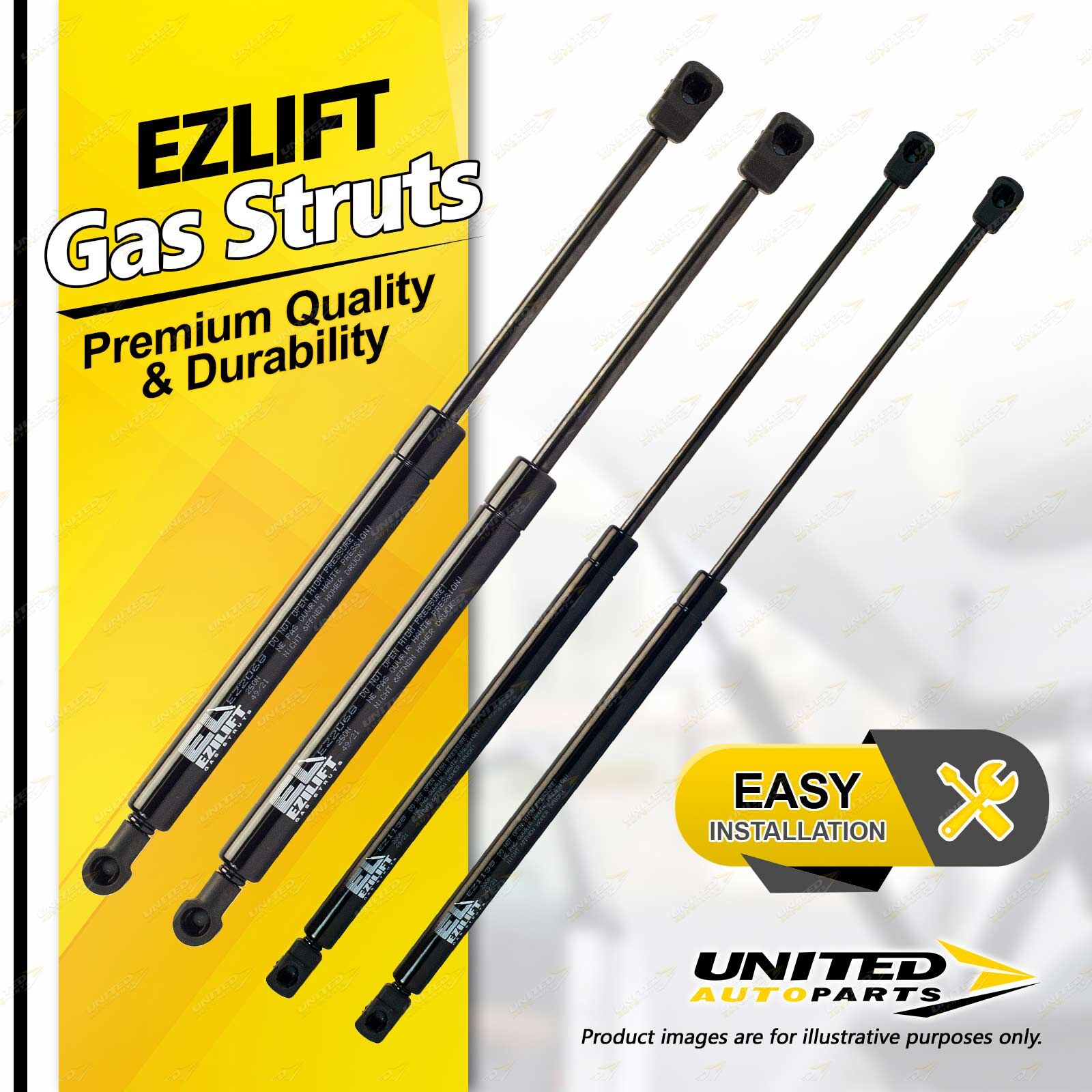 United Autoparts Gas Struts are the market' s premium replacement product.All products are 100% Tested, easy to fit with the use of simple hand tools and restore peace of mind and personal safety within minutes. |
