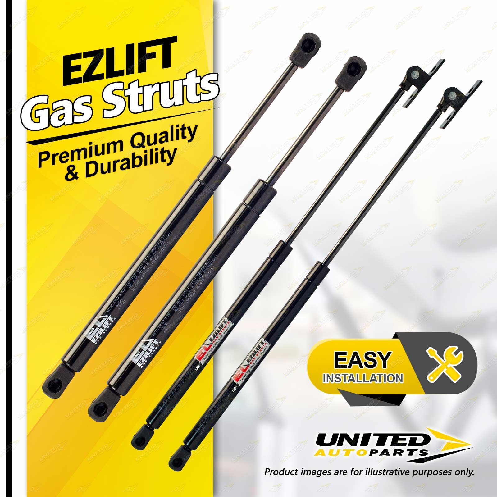 United Autoparts Gas Struts are the market' s premium replacement product.All products are 100% Tested, easy to fit with the use of simple hand tools and restore peace of mind and personal safety within minutes. |