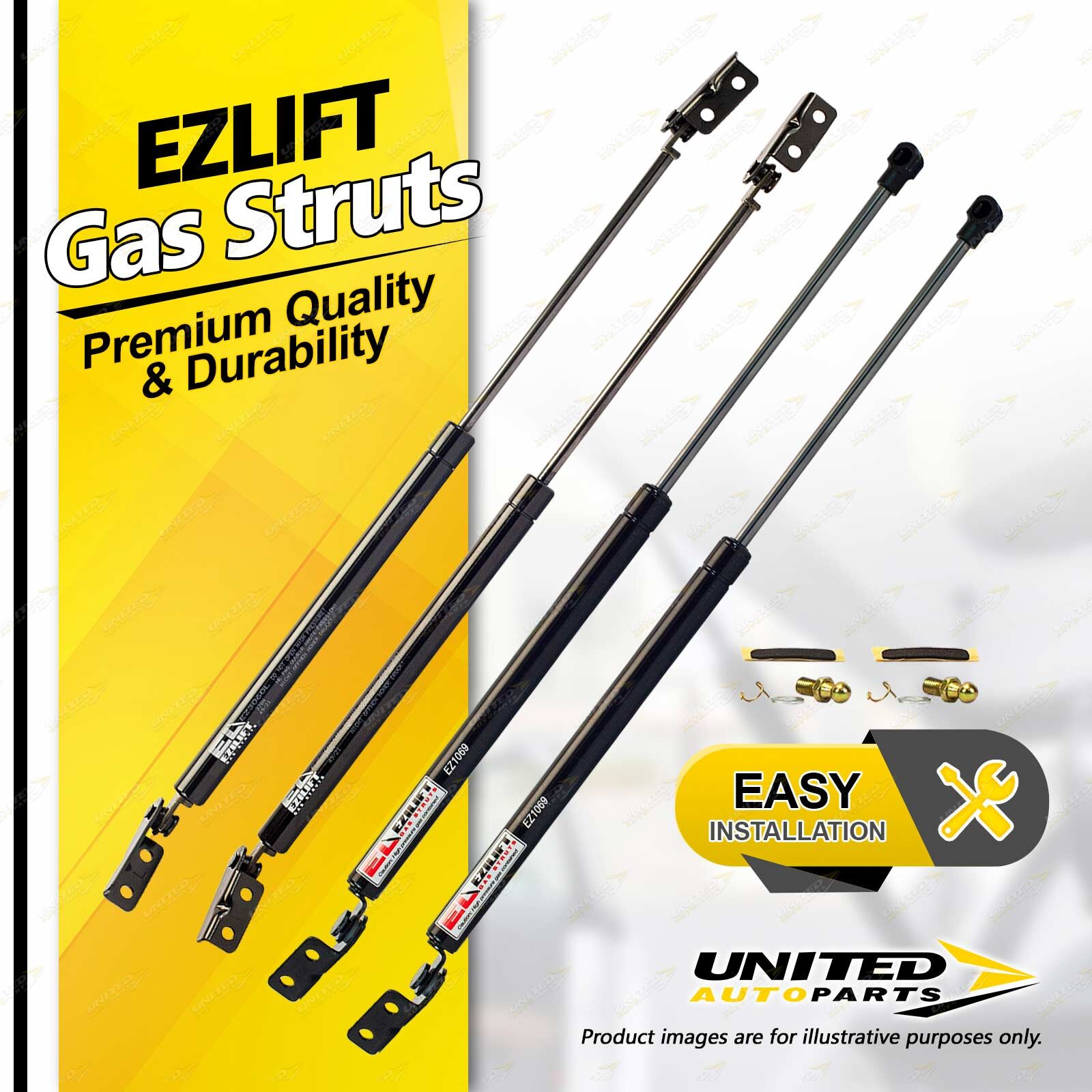 United Autoparts Gas Struts are the market' s premium replacement product.All products are 100% Tested, easy to fit with the use of simple hand tools and restore peace of mind and personal safety within minutes. |