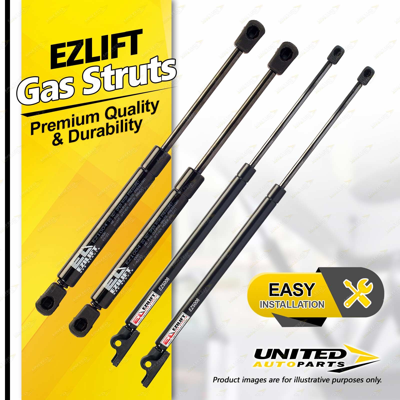 United Autoparts Gas Struts are the market' s premium replacement product.All products are 100% Tested, easy to fit with the use of simple hand tools and restore peace of mind and personal safety within minutes. |