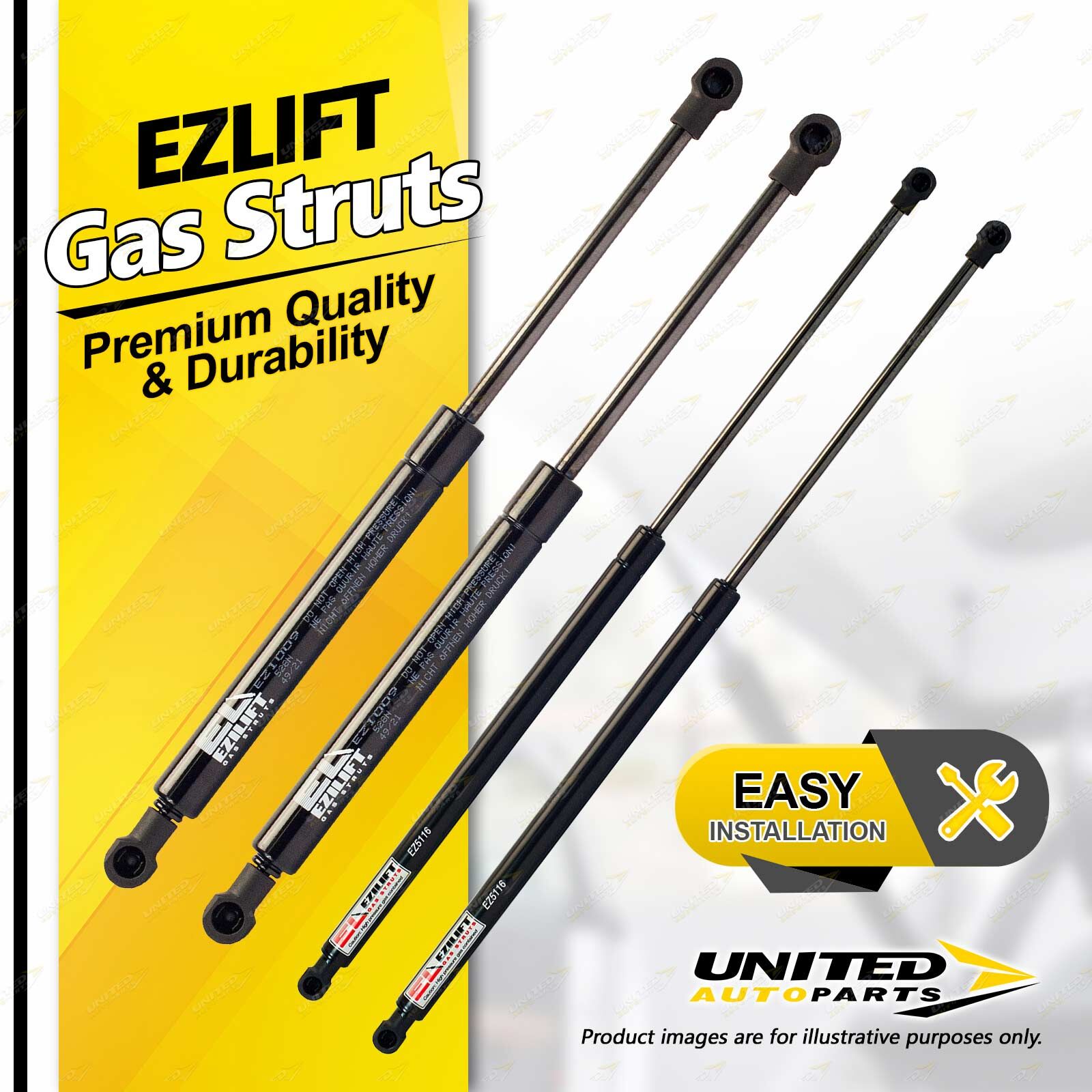 United Autoparts Gas Struts are the market' s premium replacement product.All products are 100% Tested, easy to fit with the use of simple hand tools and restore peace of mind and personal safety within minutes. |