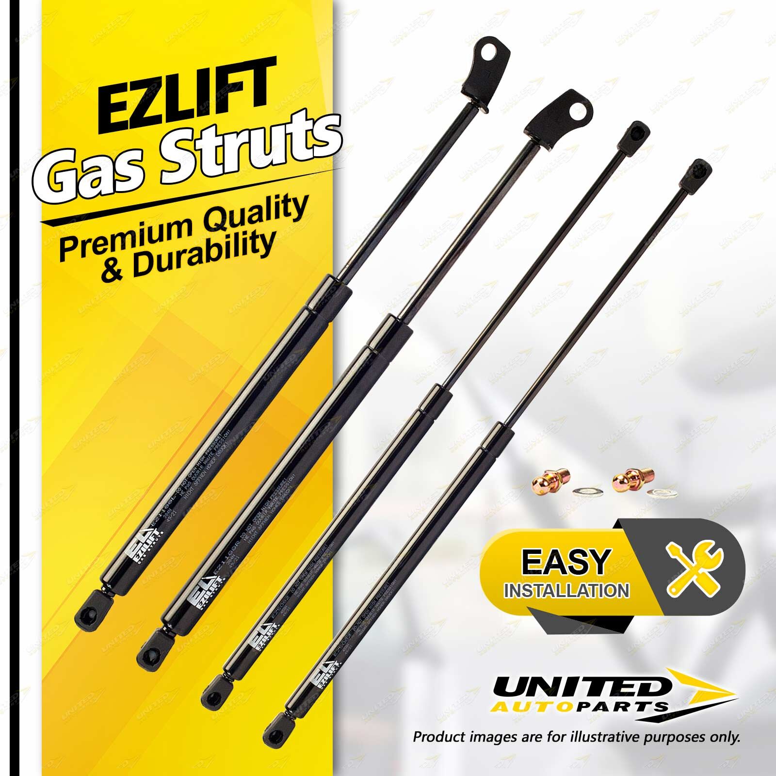 United Autoparts Gas Struts are the market' s premium replacement product.All products are 100% Tested, easy to fit with the use of simple hand tools and restore peace of mind and personal safety within minutes. |