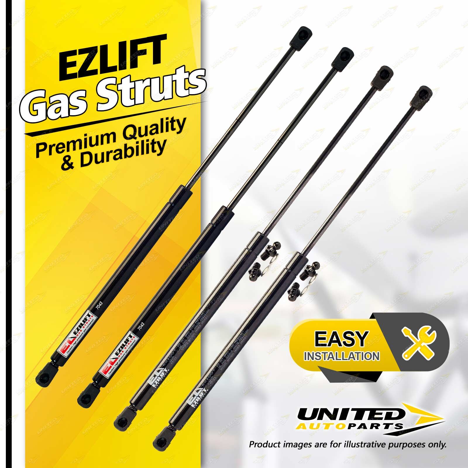 United Autoparts Gas Struts are the market' s premium replacement product.All products are 100% Tested, easy to fit with the use of simple hand tools and restore peace of mind and personal safety within minutes. |