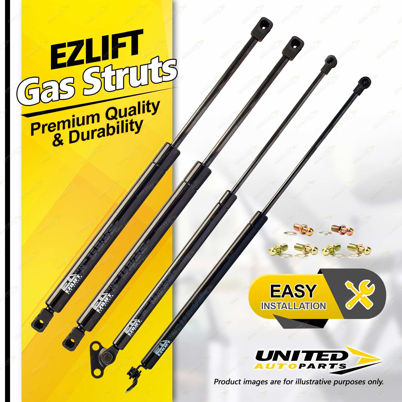 United Autoparts Gas Struts are the market' s premium replacement product.All products are 100% Tested, easy to fit with the use of simple hand tools and restore peace of mind and personal safety within minutes. |