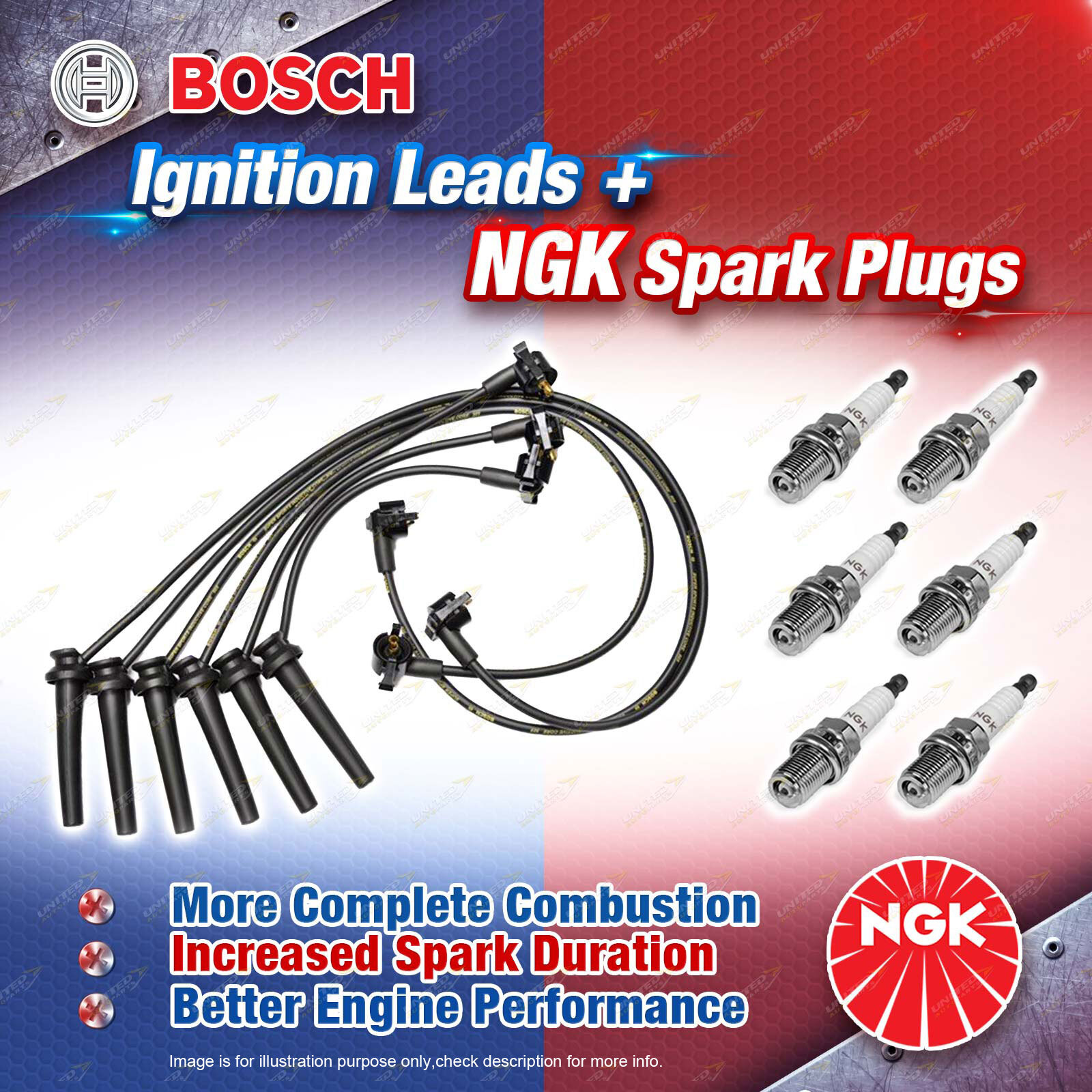6 x NGK Spark Plugs + Bosch Ignition Leads Kit for Ford Mondeo HA HC HD HE FXXGB
