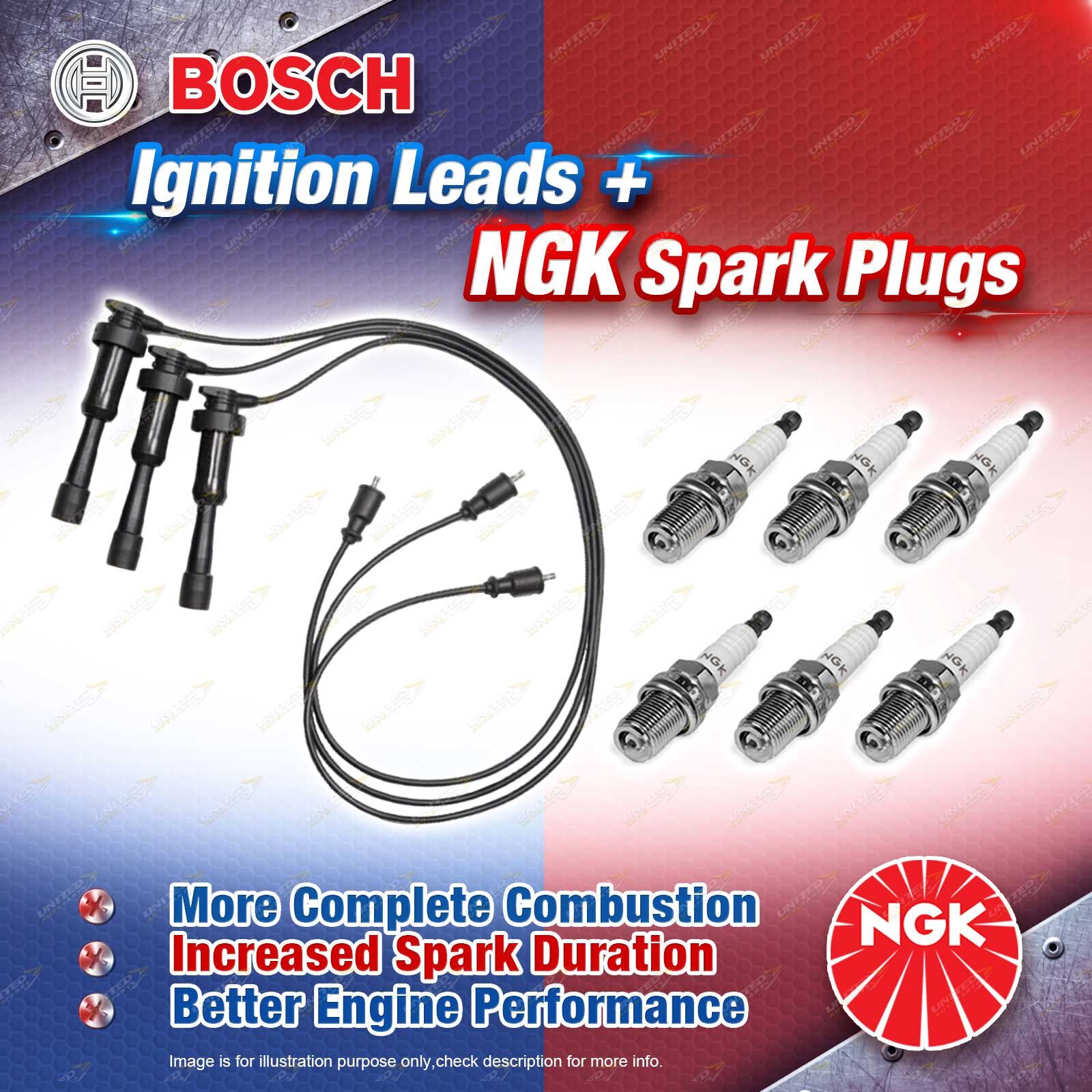 6 x NGK Spark Plugs + Bosch Ignition Leads Kit for Mitsubishi Pajero NJ NK 3.5L