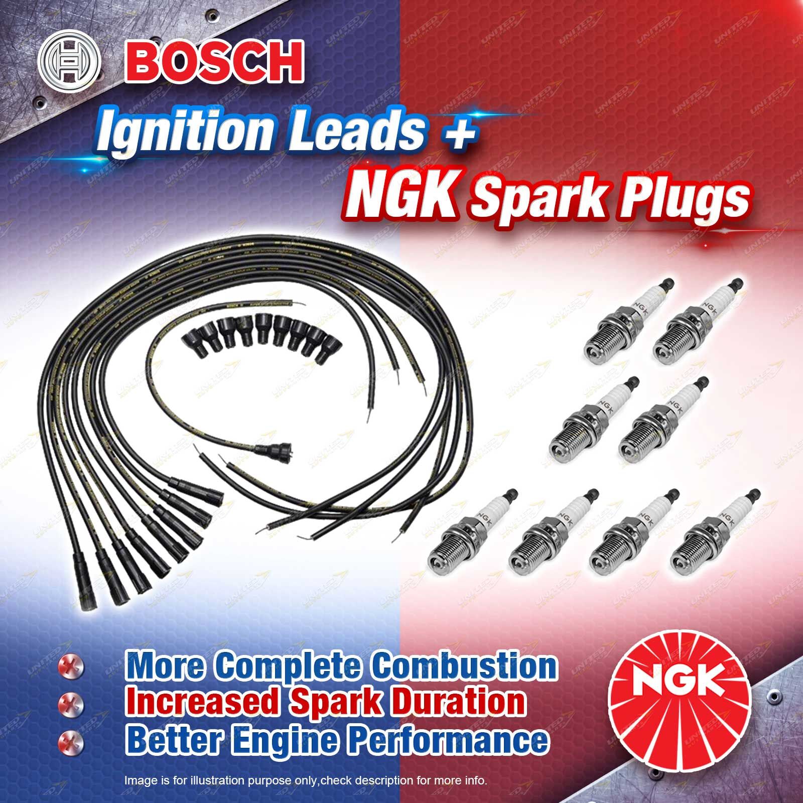 8 x NGK Spark Plugs + Bosch Ignition Leads Kit for Ford Galaxie 500 6.4L 390 V8