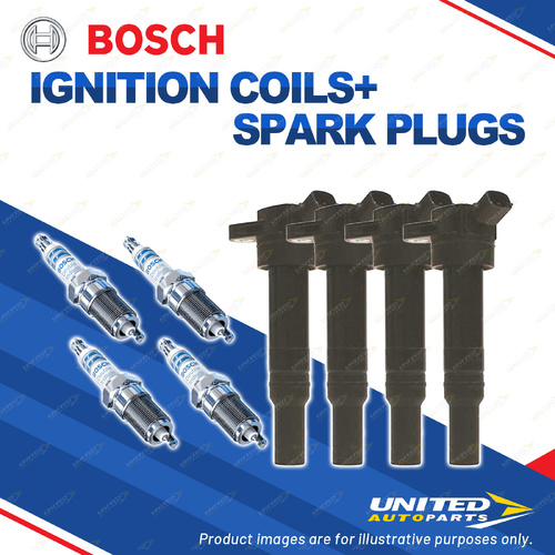 Bosch 4 Spark Plugs+4 Ignition Coils for Hyundai i40 VF iX35 LM Tucson TLE I4