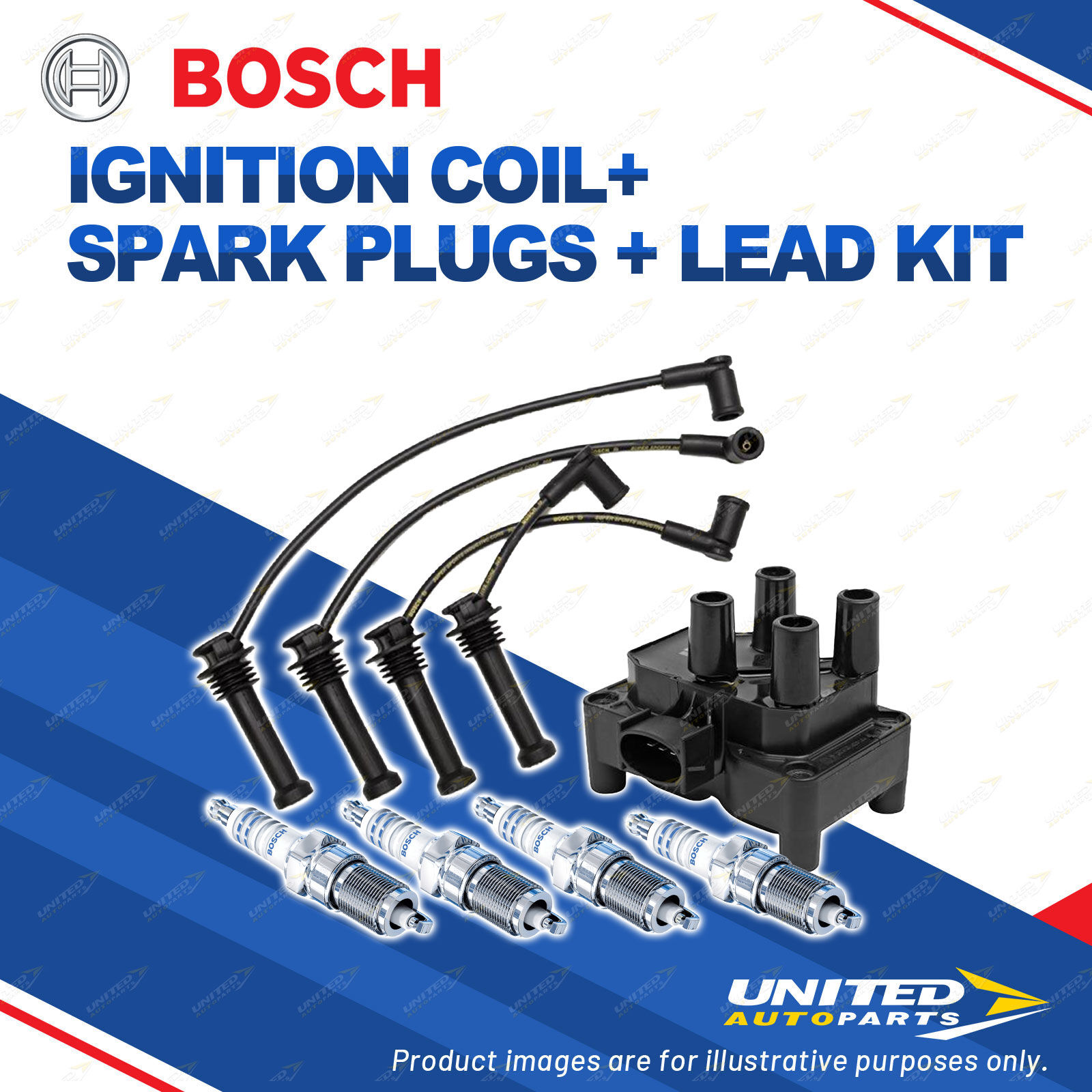 Bosch 4 Spark Plugs Coil Lead Kit for Ford Focus LR AXXGC AXXWP NXXWP I4