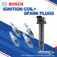 Bosch 4 Spark Plugs+Ignition Coil for Toyota Avensis ACM21R 2.4L 2AZFE I4 05-10