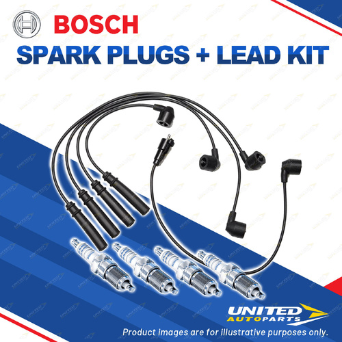 Bosch 4 Spark Plugs+Lead Kit for Toyota Hilux RN85R 90R 105R 106R 110R 130R 4 I4