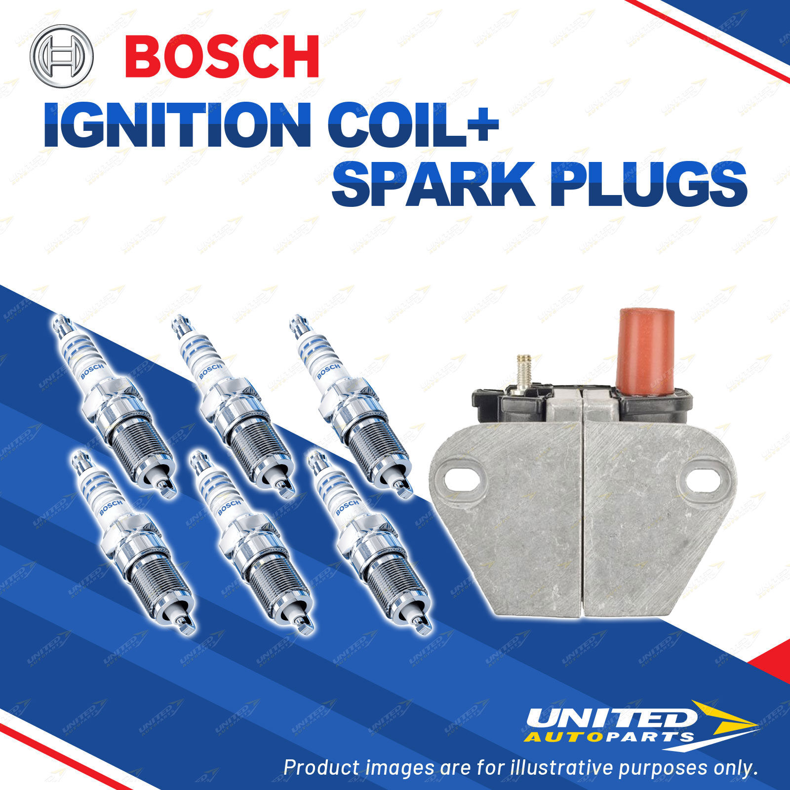 Bosch 6 Spark Plugs+Ignition Coil for Mercedes Benz 190E 260E 300E 300SE I6