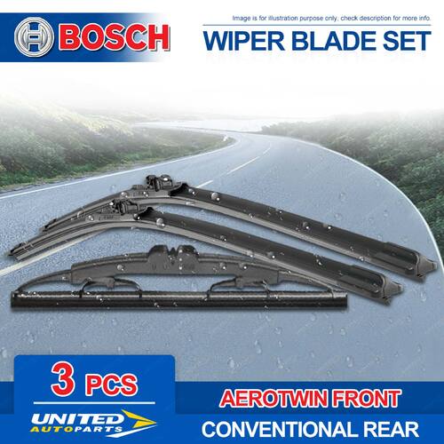 Contents : 2 x Bosch Front Wiper Blades (Aerotwin Retrofit) 1 x Bosch Rear Wiper Blade (Conventional) Position : Front + Rear Front Length(mm) : 600/600 | ||||