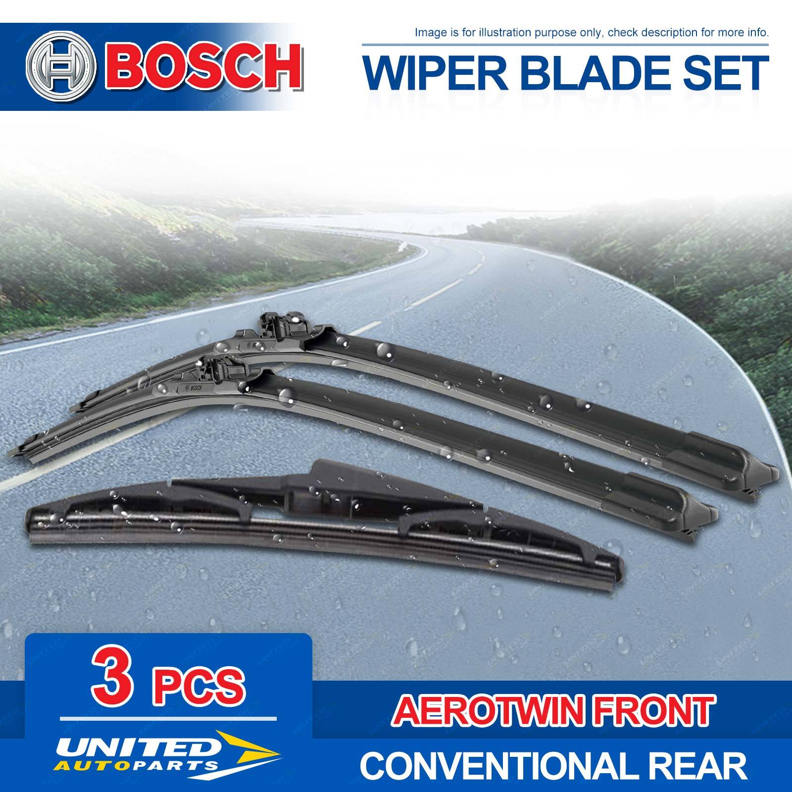 Contents : 2 x Bosch Front Wiper Blades (Aerotwin Retrofit) 1 x Bosch Rear Wiper Blade (Conventional) Position : Front + Rear Front Length(mm) : 550/400 | ||||