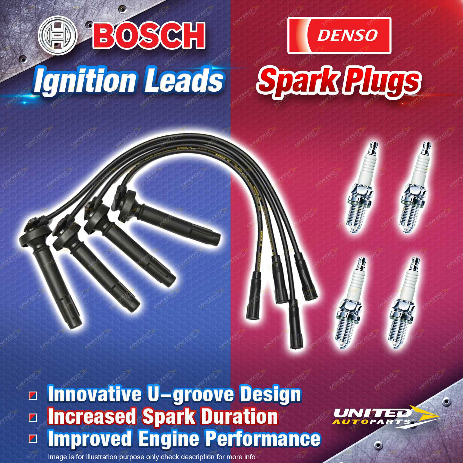 Contents : 4 x Denso Iridium Tough Spark Plugs Spark Plugs Parameters : Diameter(mm):14 Ignition Leads Parameters : Product Key Description : Ignition cable set Suit Vehicle : |