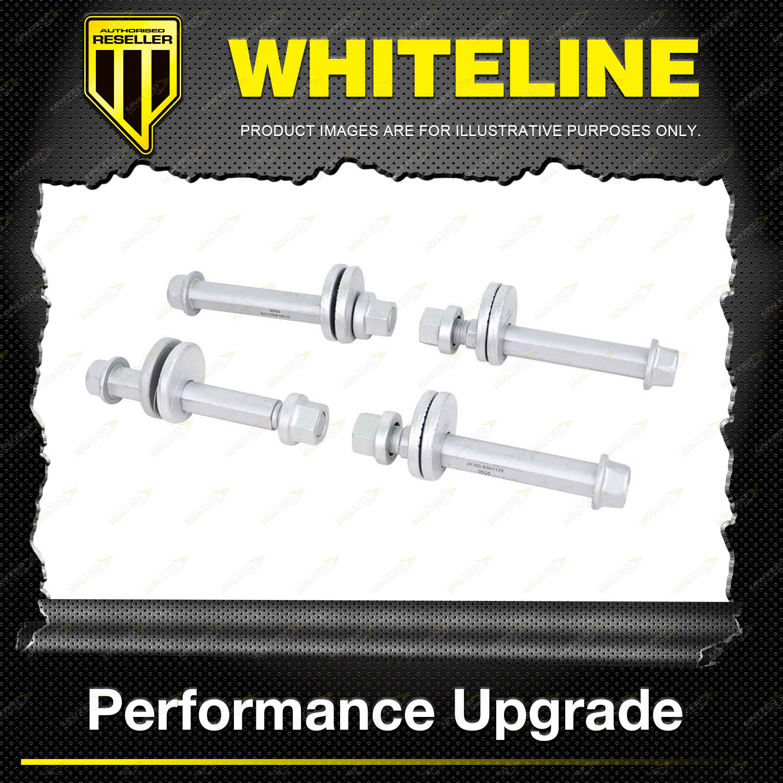 Contents : Whiteline Front Control Arm Lower - Inner Camber Bolt Kit Warranty : Lifetime Kit Contents : 4 Bolts, 4 Washers, 4 Nuts |
