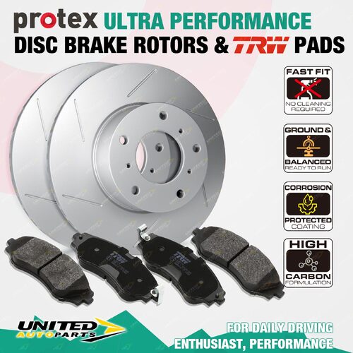 Front Protex Ultra Perf Brake Rotors + TRW Pads for Holden HQ HJ HX HZ Girlock