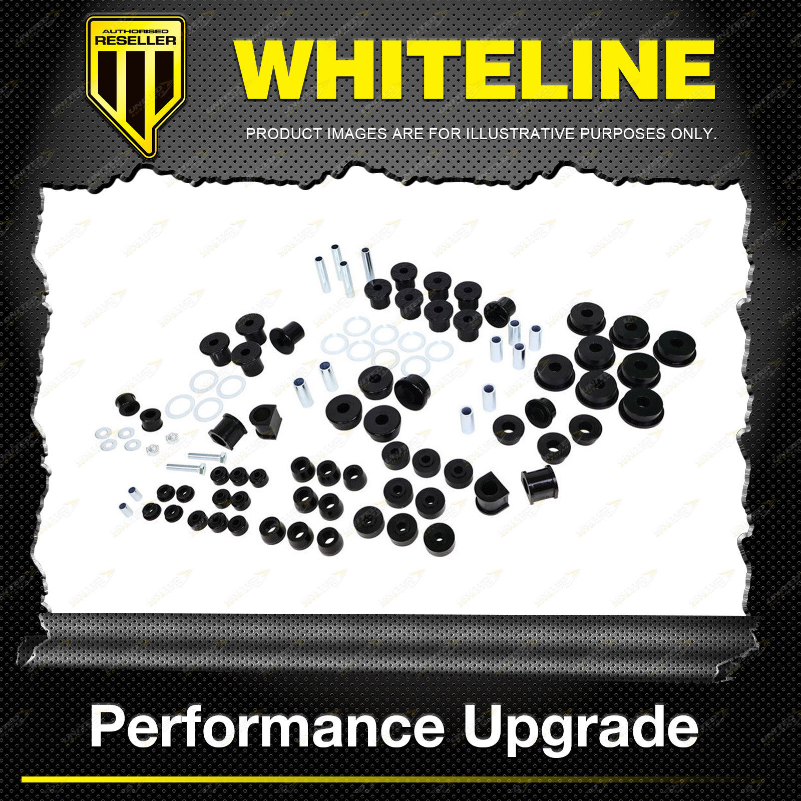 Contents : Whiteline Front and Rear Essential Vehicle Kit Warranty : Lifetime Kit Contents : 50 Bushings, 16 Tubes, 2 Bolts, 16 Washers, 2 Nuts |