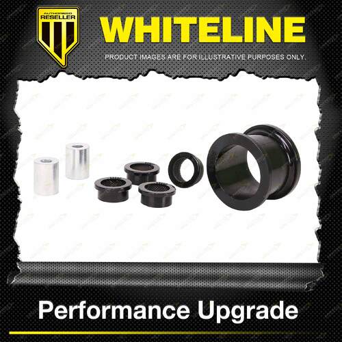 Contents : Whiteline Steering - Rack and Pinion Mount Bushing Kit Position : Front Warranty : Limited Lifetime Warranty Kit Contents : 5 Bushings, 2 Tubes, Grease |