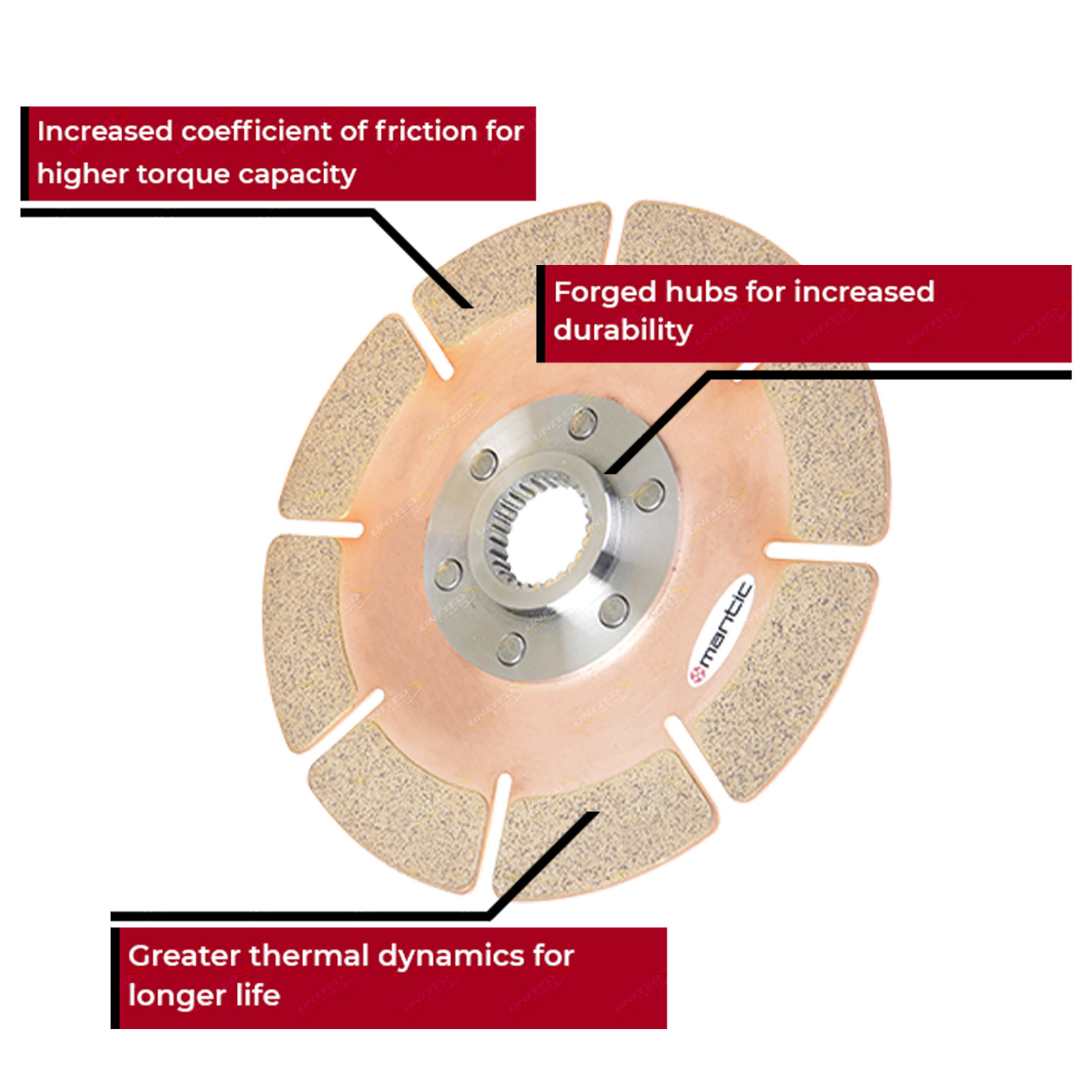 Full Cerametallic (SSCC) Clutch Plate For Increased Torque capacity featuring High Performance Engineered and Manufactured Friction Material