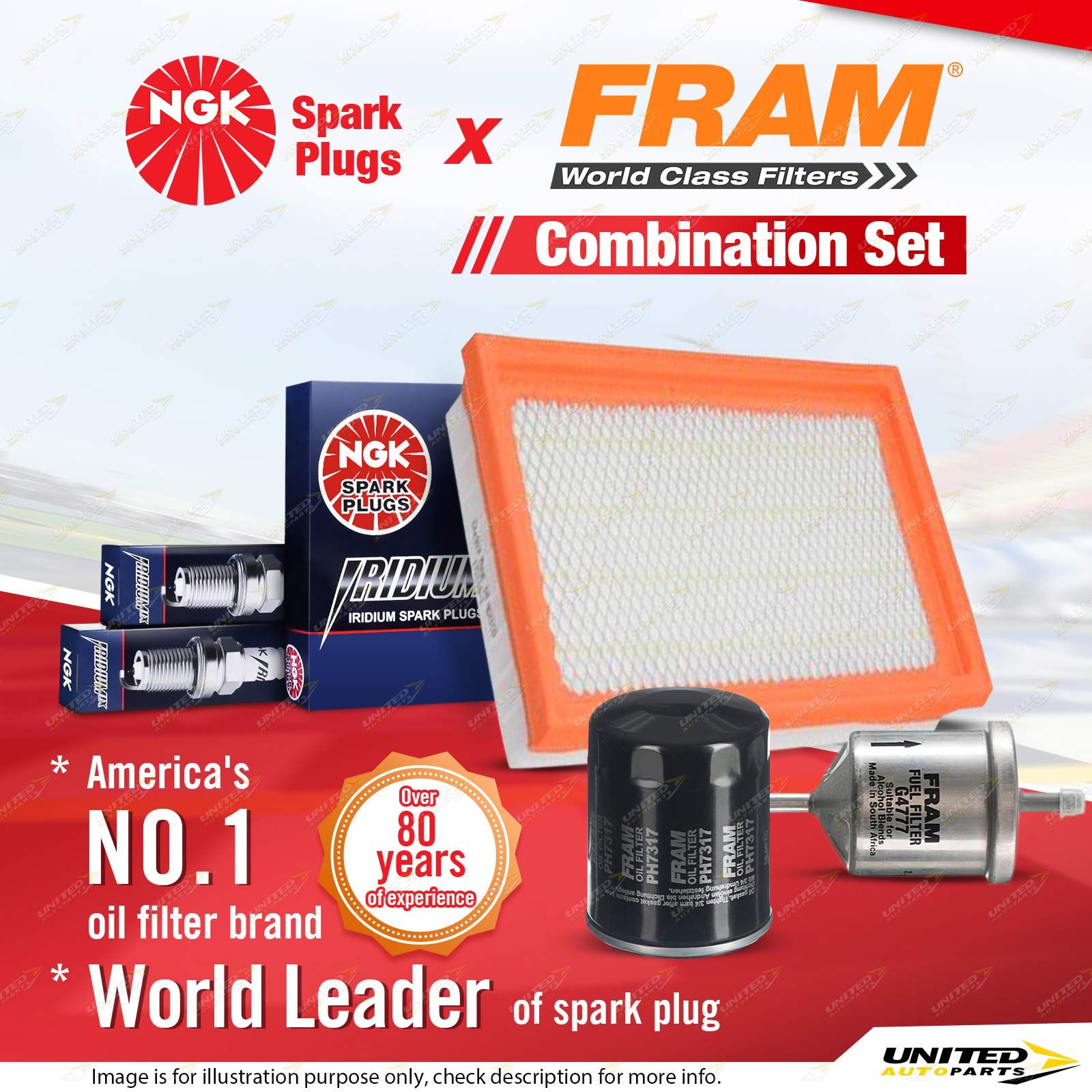 Contents : NGK Iridium IX Spark Plugs + Fram Filter Service Kit