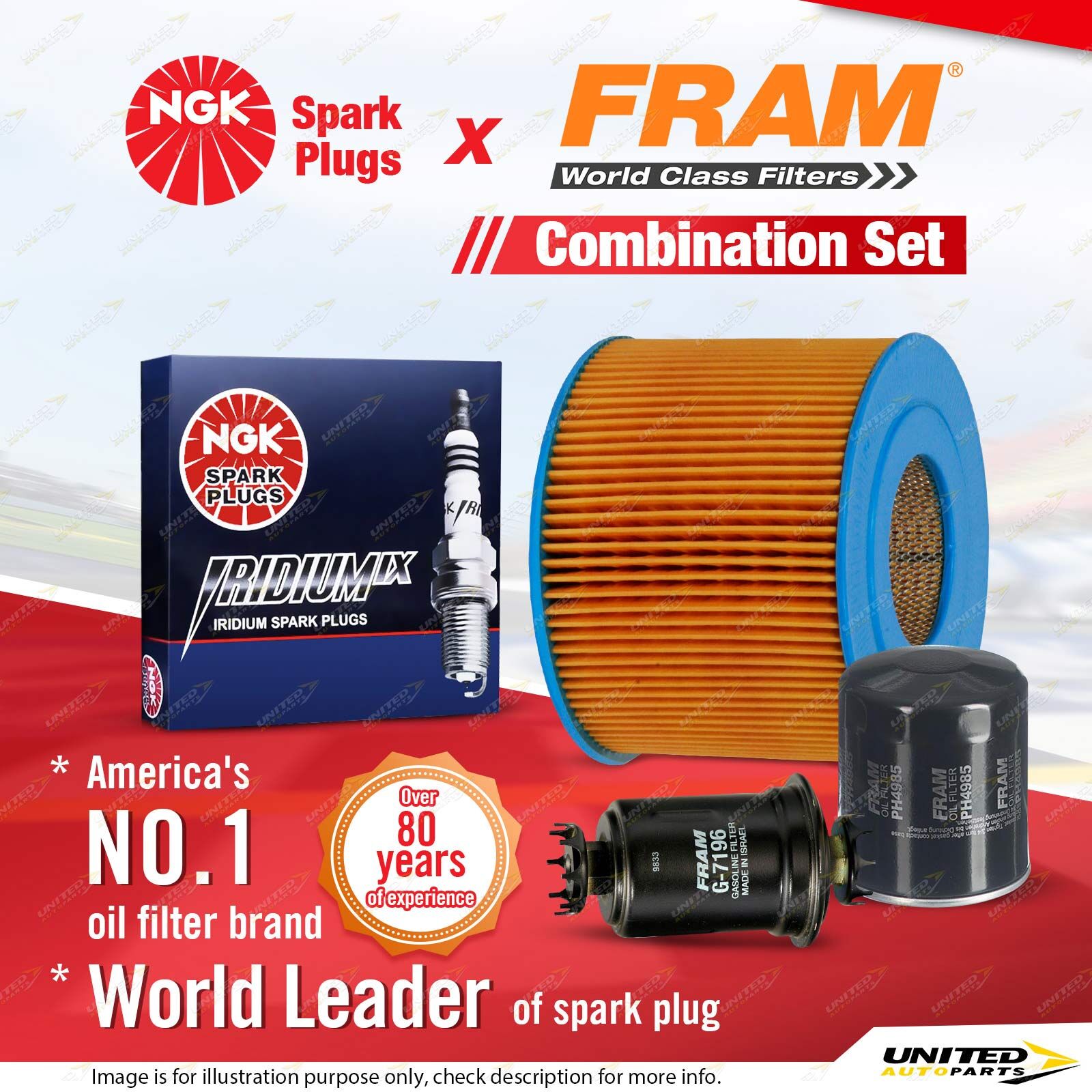 Contents : NGK Iridium IX Spark Plugs + Fram Filter Service Kit