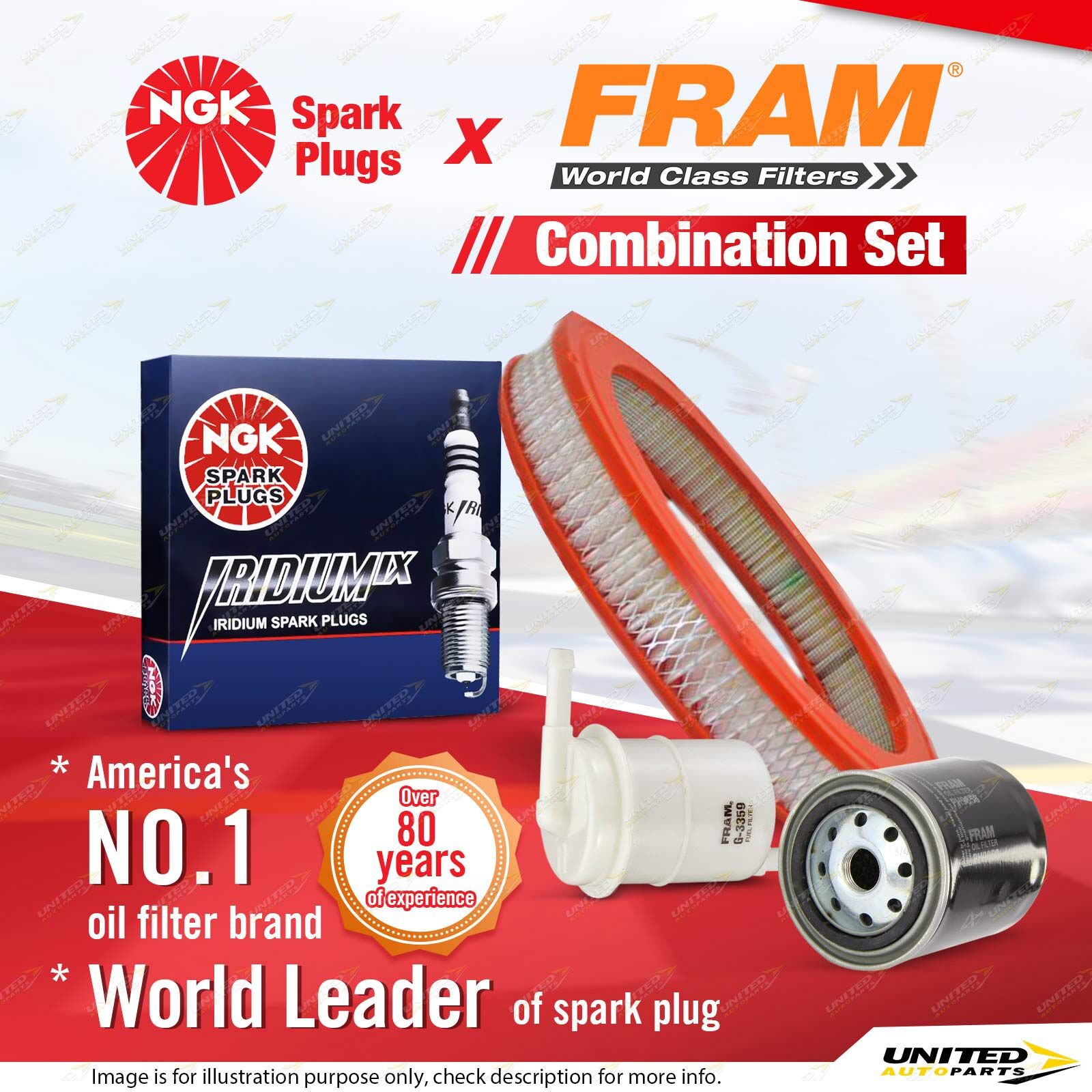 Contents : NGK Iridium IX Spark Plugs + Fram Filter Service Kit