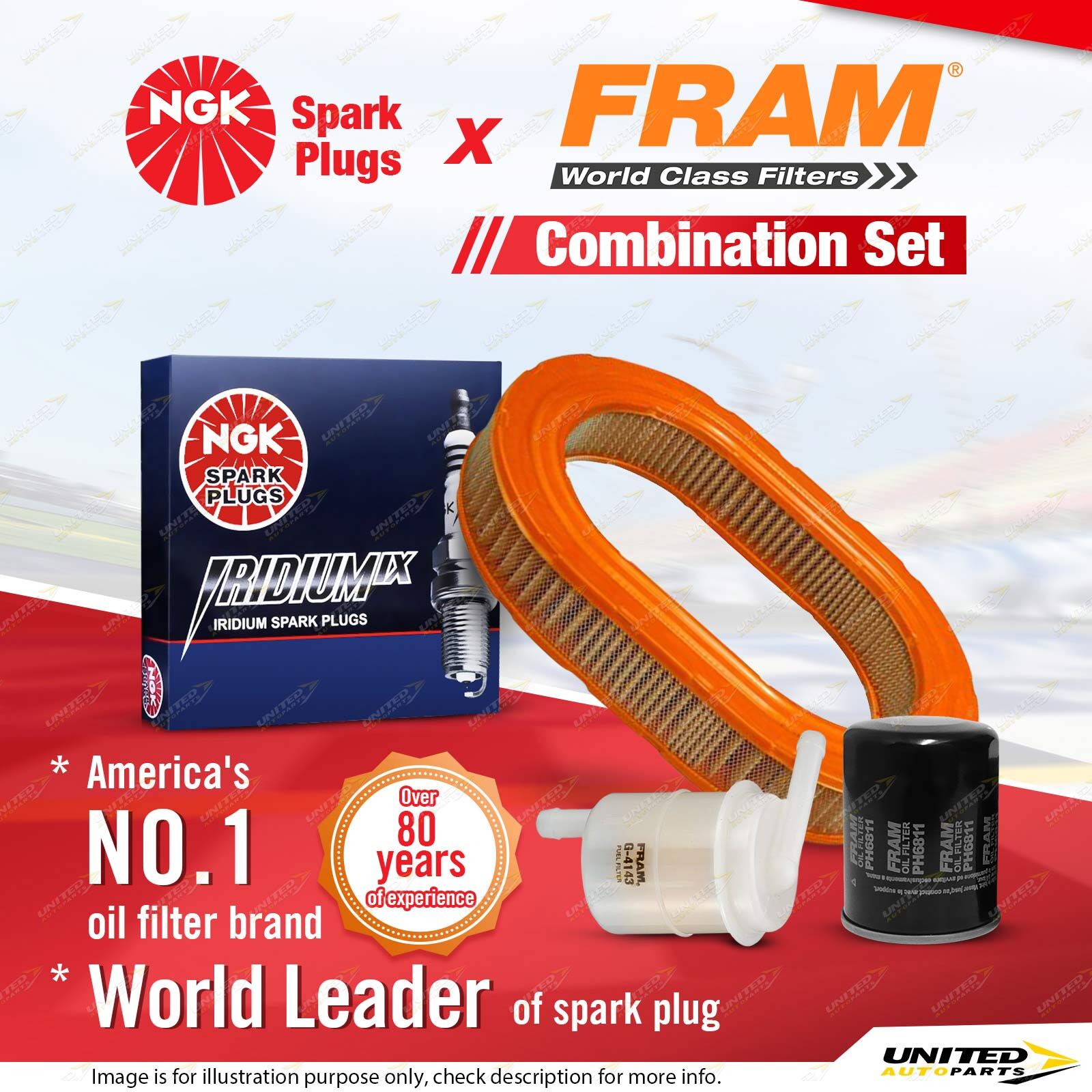 Contents : NGK Iridium IX Spark Plugs + Fram Filter Service Kit