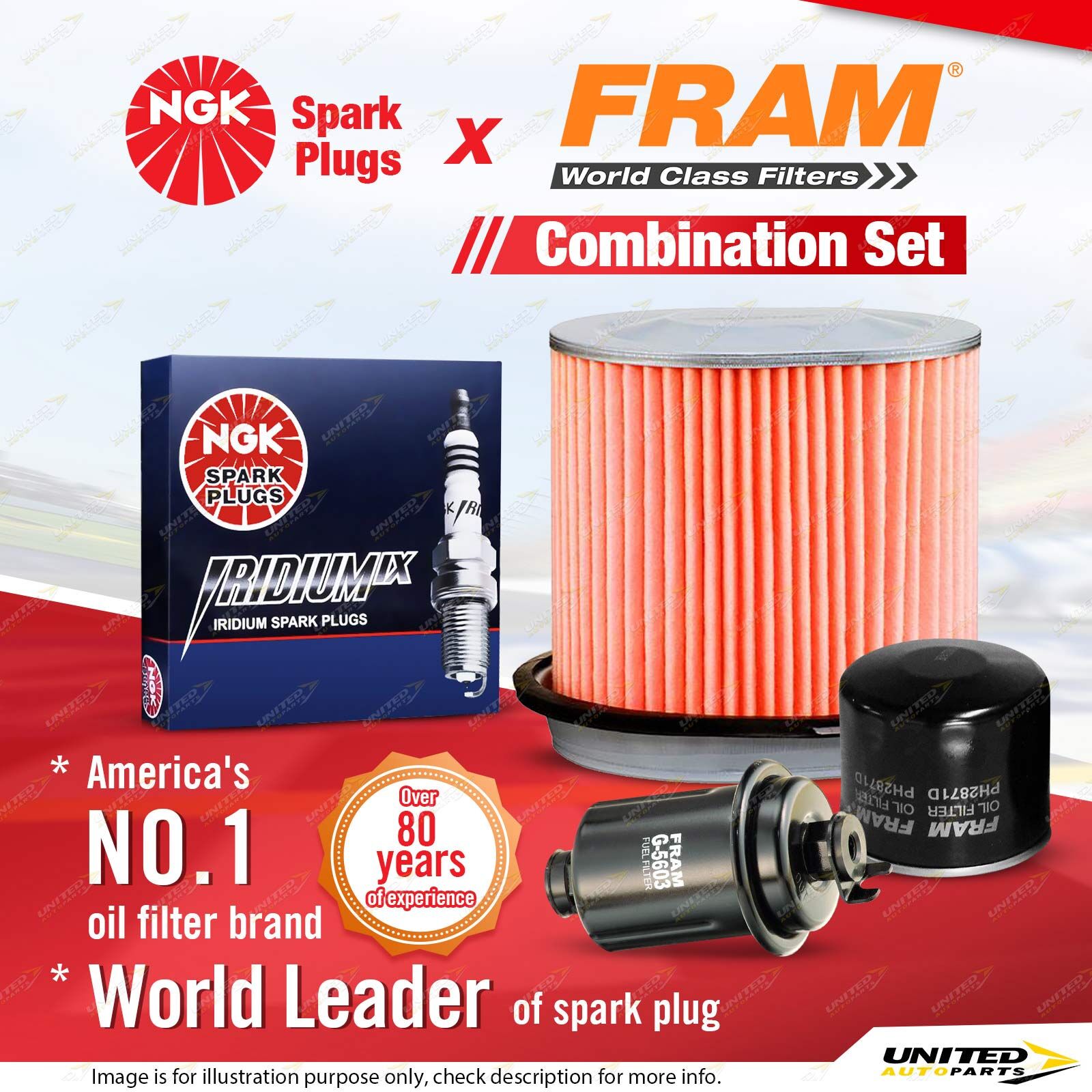 Contents : NGK Iridium IX Spark Plugs + Fram Filter Service Kit