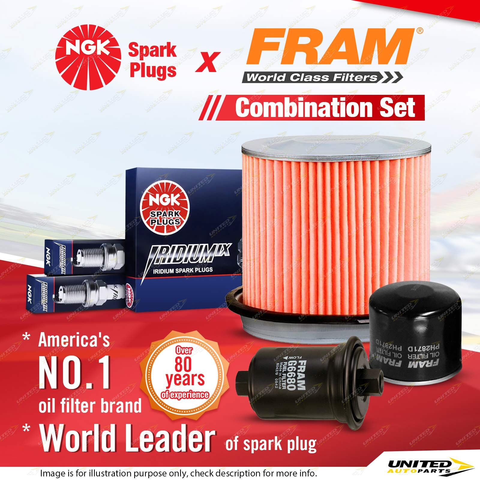 Contents : NGK Iridium IX Spark Plugs + Fram Filter Service Kit