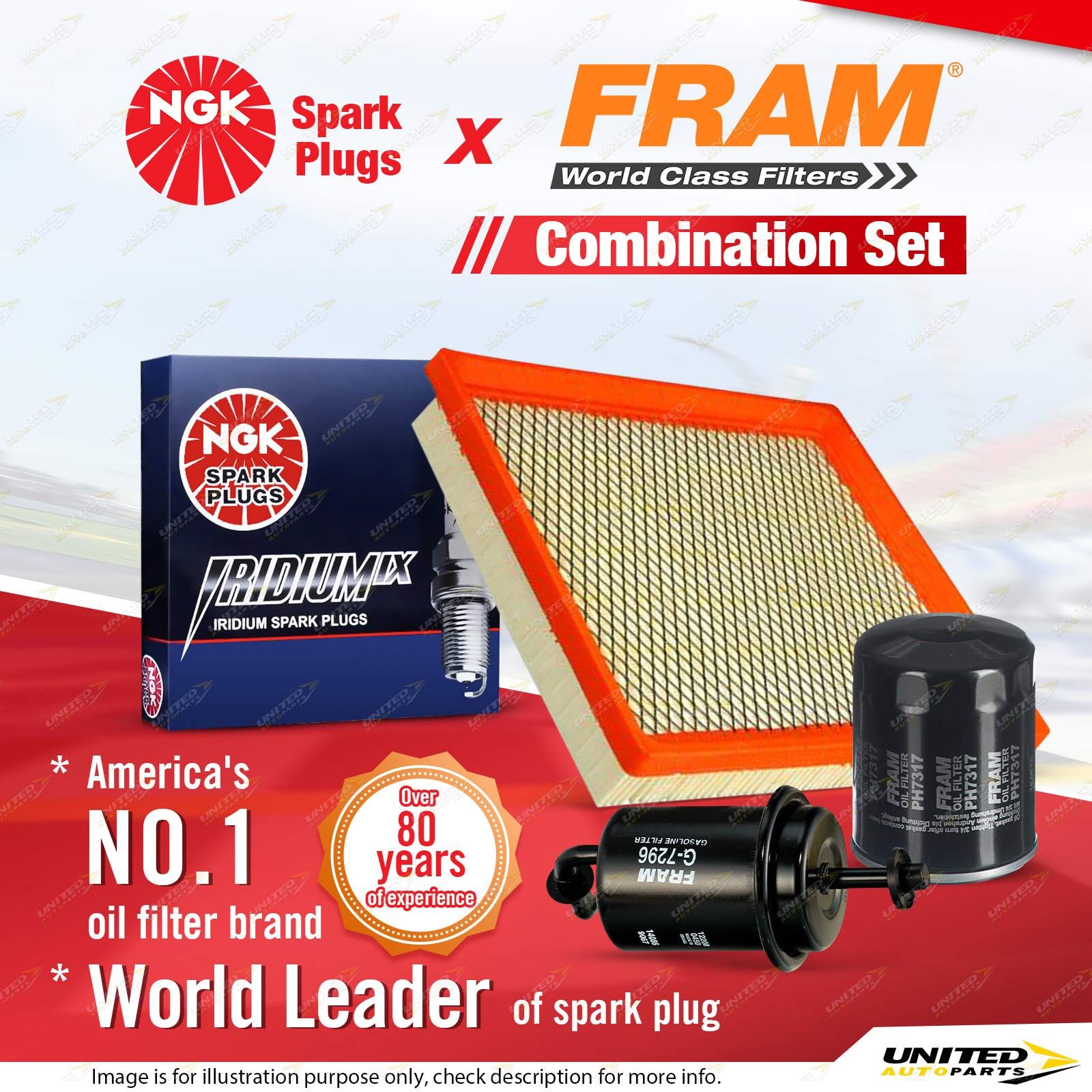 Contents : NGK Iridium IX Spark Plugs + Fram Filter Service Kit