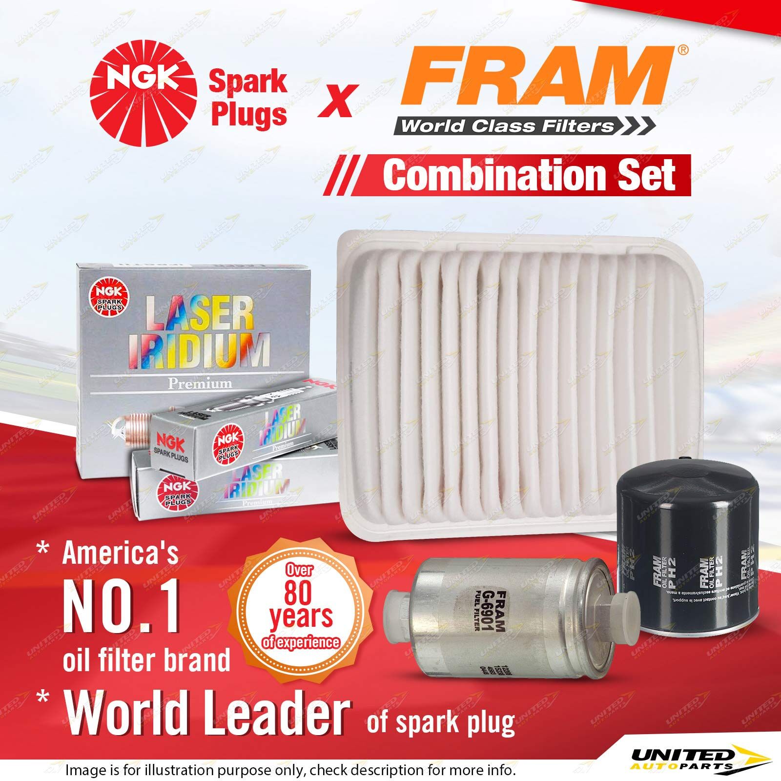 Contents : NGK Laser Iridium Spark Plugs + Fram Filter Service Kit