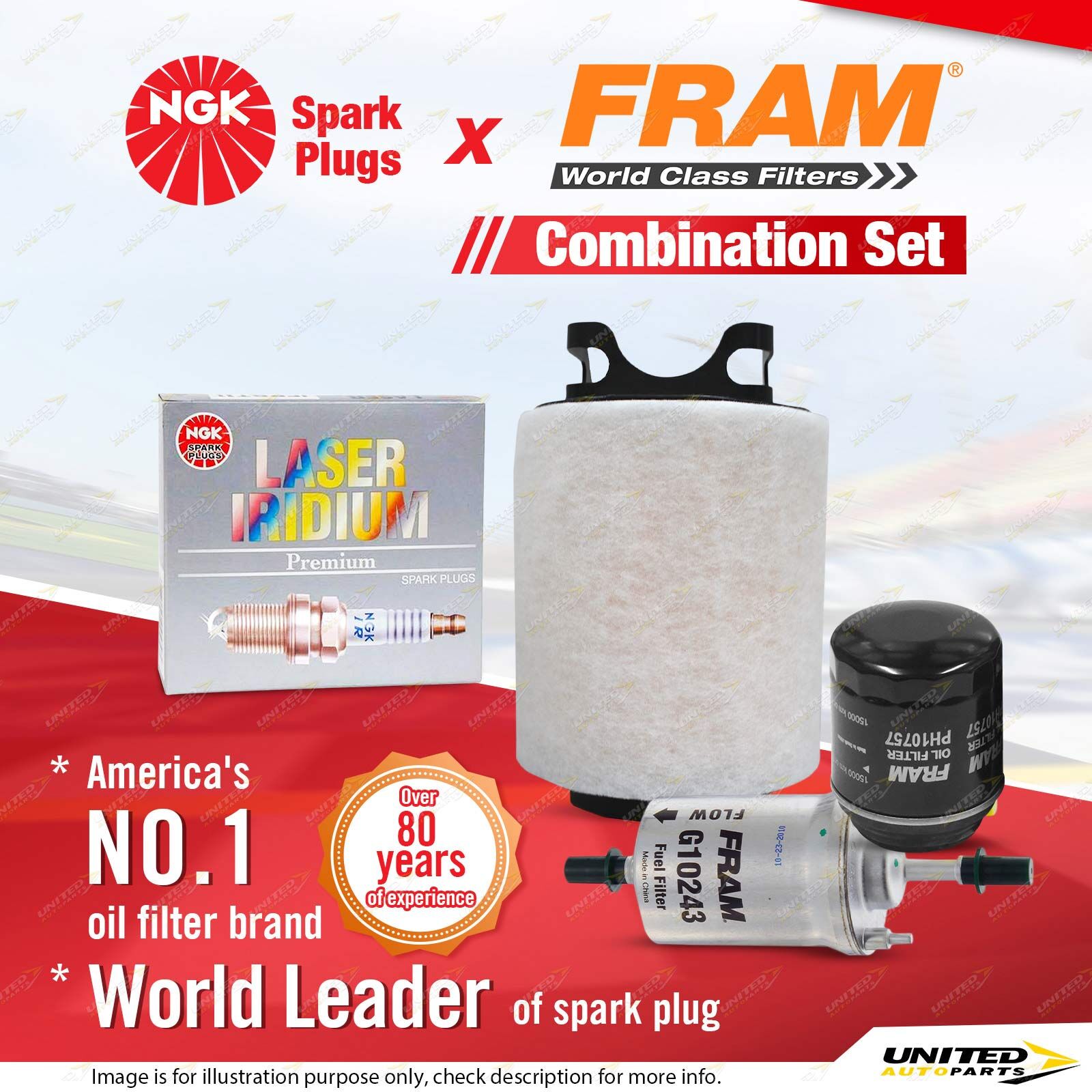 Contents : NGK Laser Iridium Spark Plugs + Fram Filter Service Kit