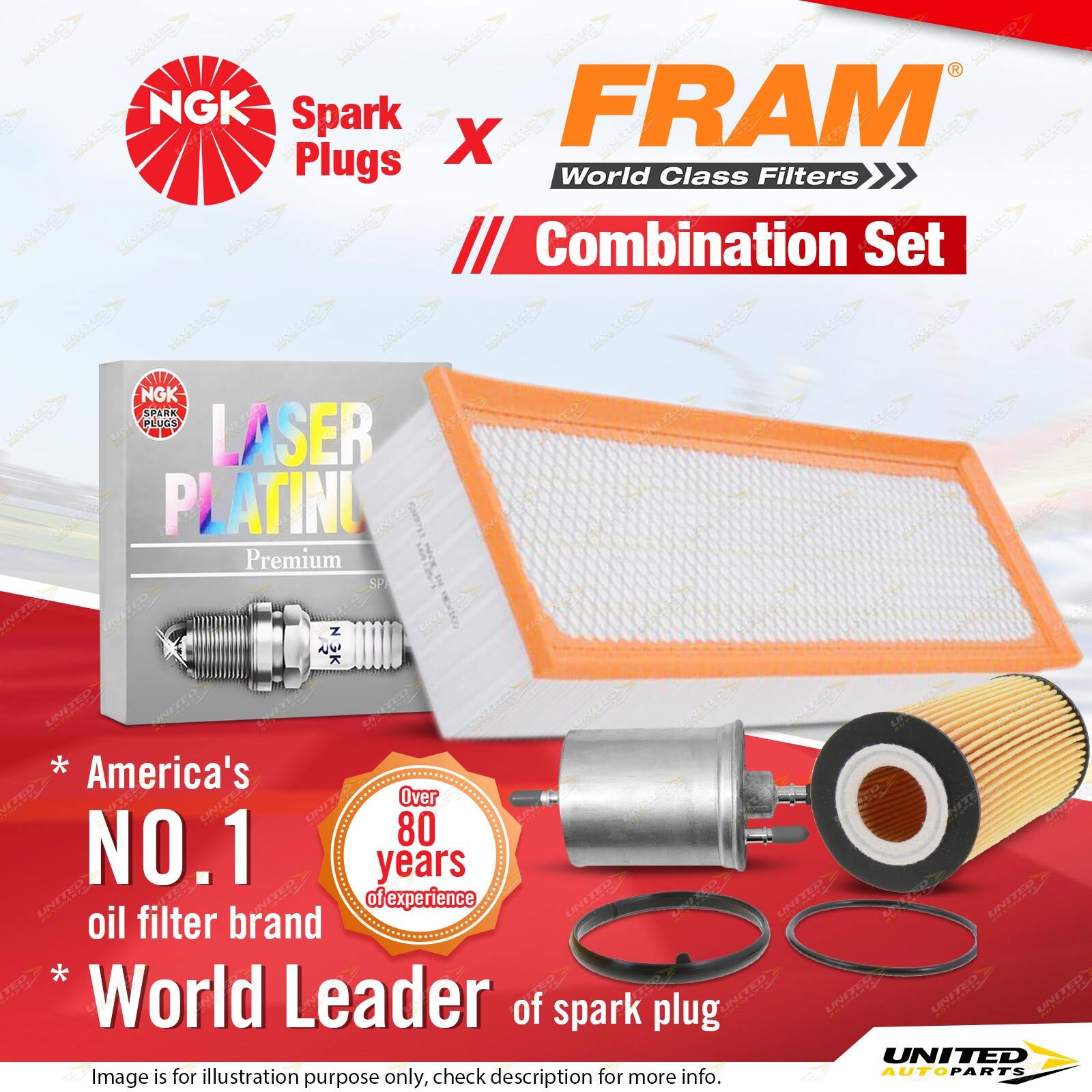 Contents : NGK Laser Platinum Spark Plugs + Fram Filter Service Kit