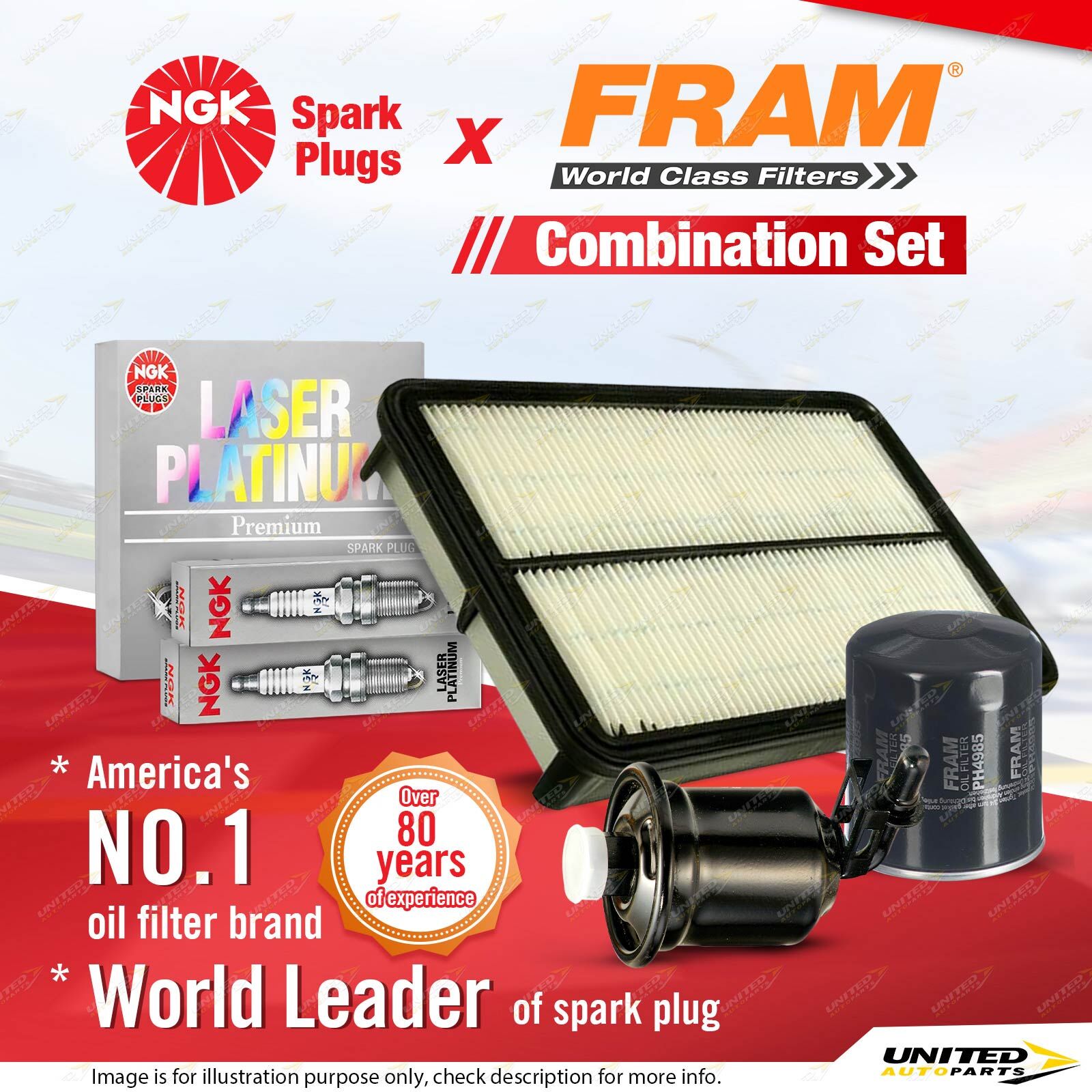 Contents : NGK Laser Platinum Spark Plugs + Fram Filter Service Kit