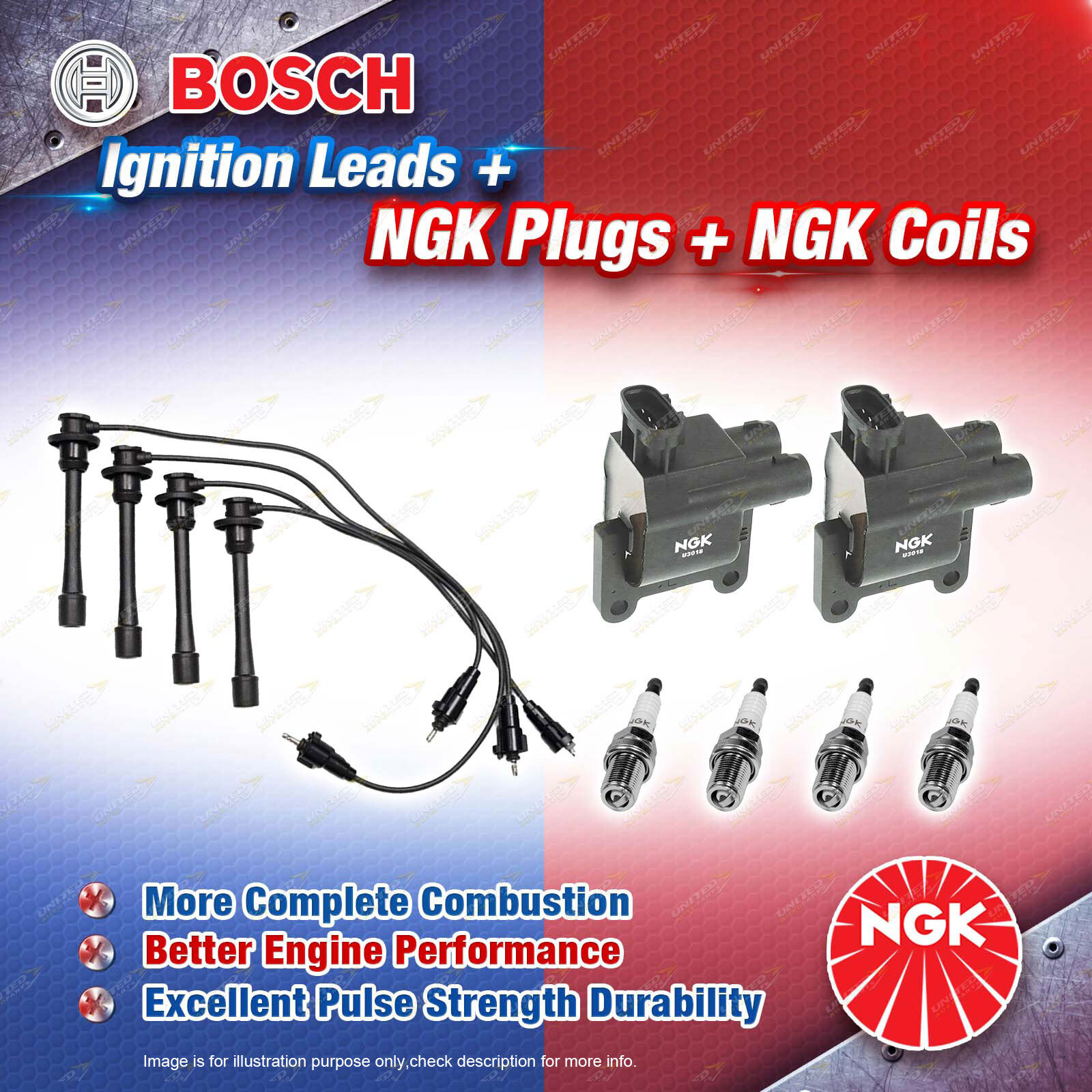 NGK Spark Plugs Coils + Bosch Leads for Toyota Hilux RZN149 RZN154 RZN169 RZN174