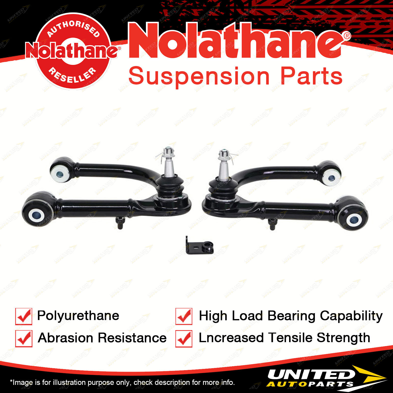 Contents : Nolathane Control Arm Upper - Arm Assembly Position : Front Warranty : Lifetime Kit Contents : 2 Arms |