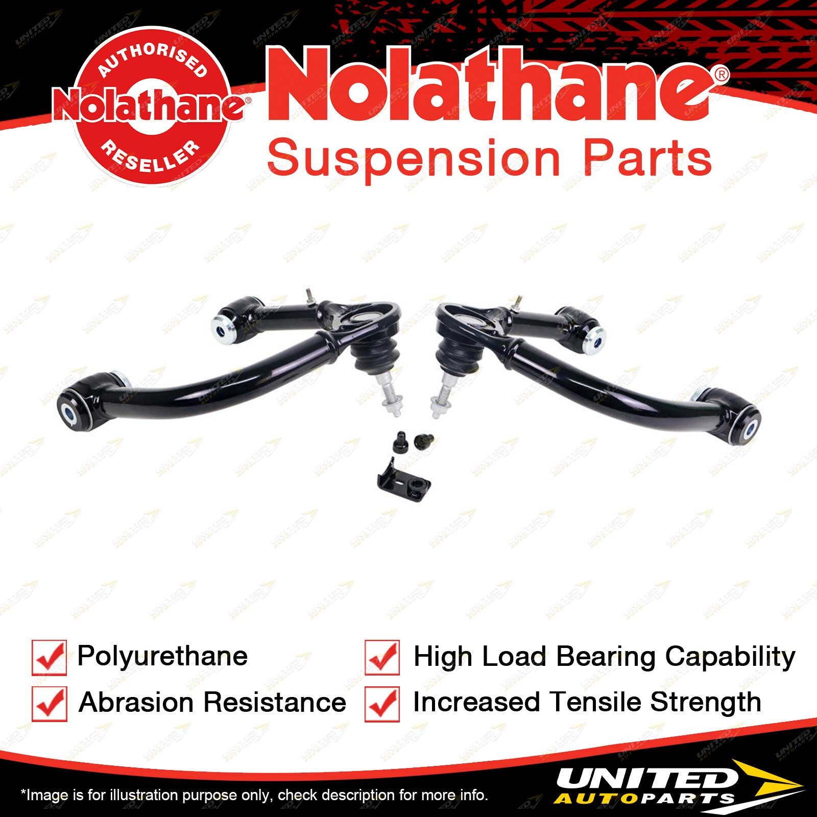 Contents : Nolathane Control Arm Upper - Arm Assembly Position : Front Warranty : Lifetime Kit Contents : 2 Arms |