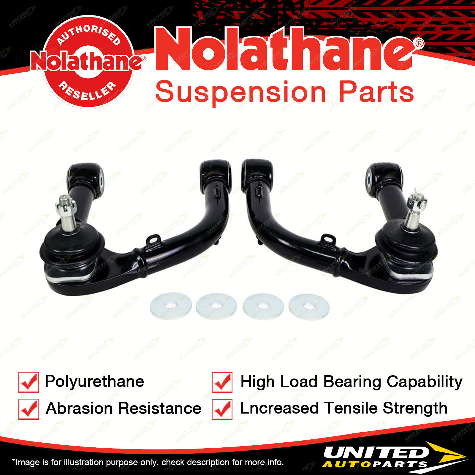 Contents : Nolathane Control Arm Upper - Arm Assembly Position : Front Warranty : 3 Year / 60,000Kms Kit Contents : 2 Arms |