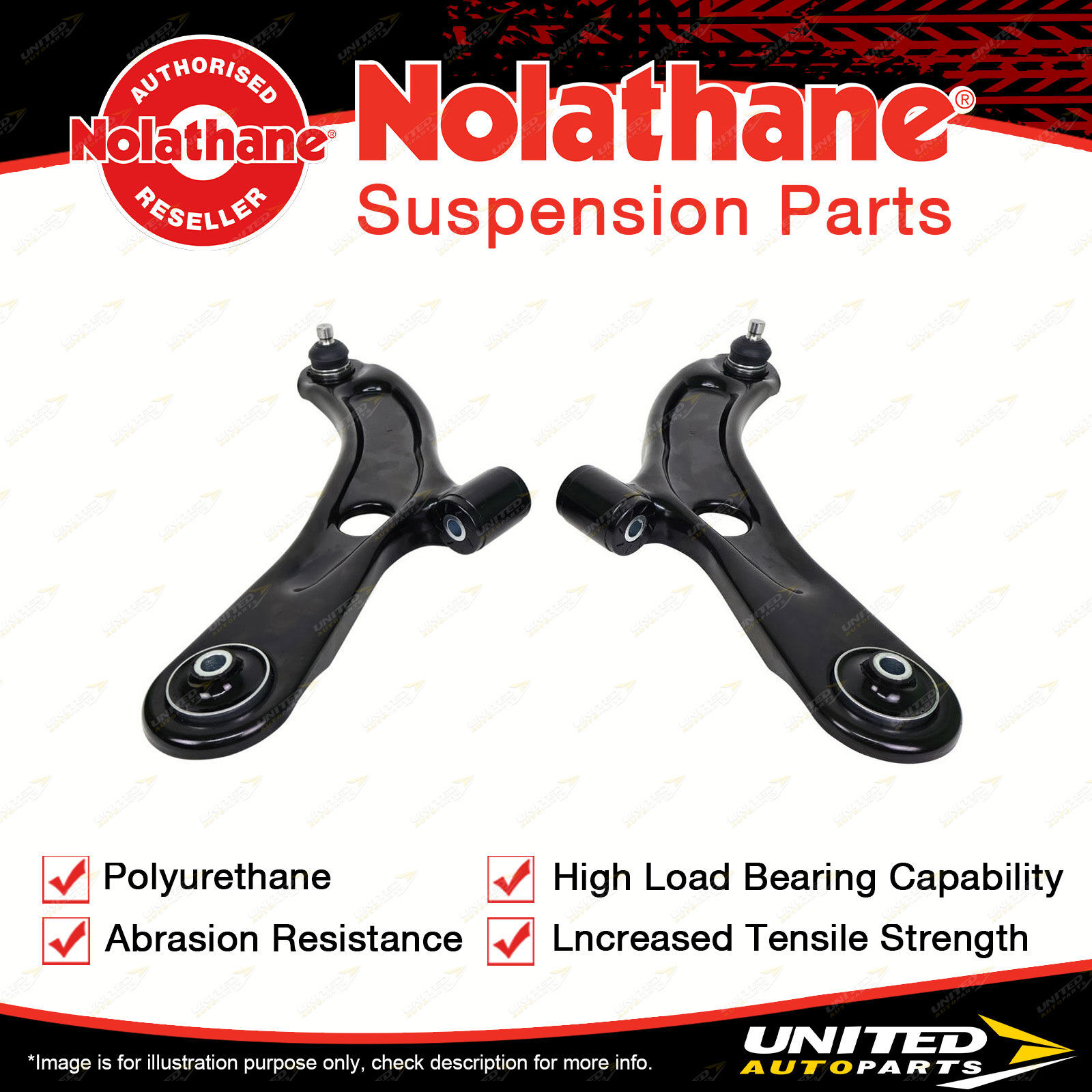 Contents : Nolathane Control Arm Lower - Arm Assembly Position : Front Warranty : Lifetime Kit Contents : 2 Arms |